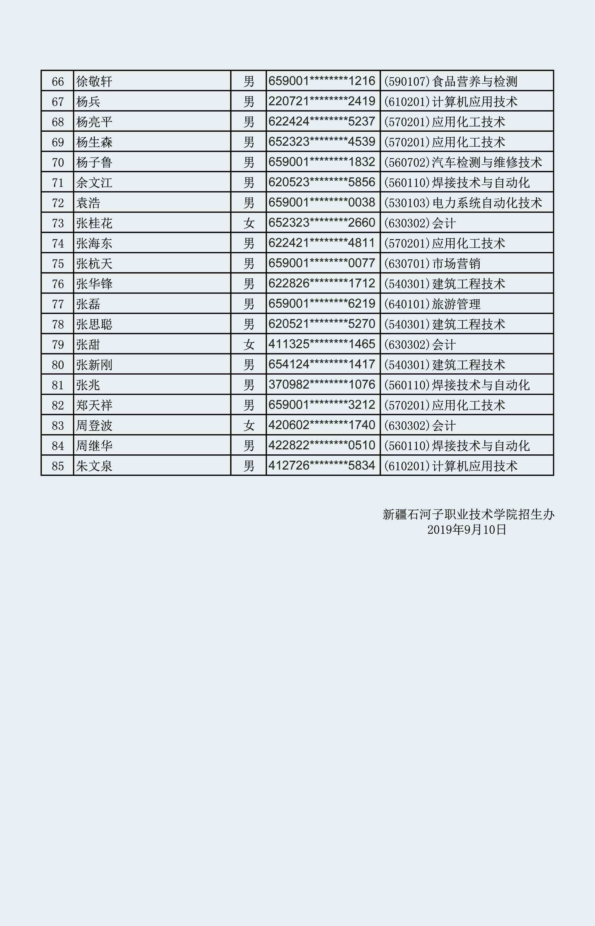 beat365唯一官方网站2019年第一阶段高职扩招面试考生名单