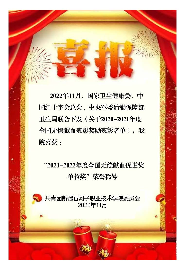 (蒋小玉 连纪新报道)近日,国家卫健委公布了《关于2020-2021年度全国无偿献血表彰奖励表彰名单》,此项表彰活动由国家卫生健康委、中国红十字会总会、中央军委后勤保障部卫生局联合开展,周期为两年一次,beat365唯一官方网站喜获“2020-2021年度全国无偿献血促进奖单位奖”荣誉称号,成为新疆获此殊荣的12个单位之一。