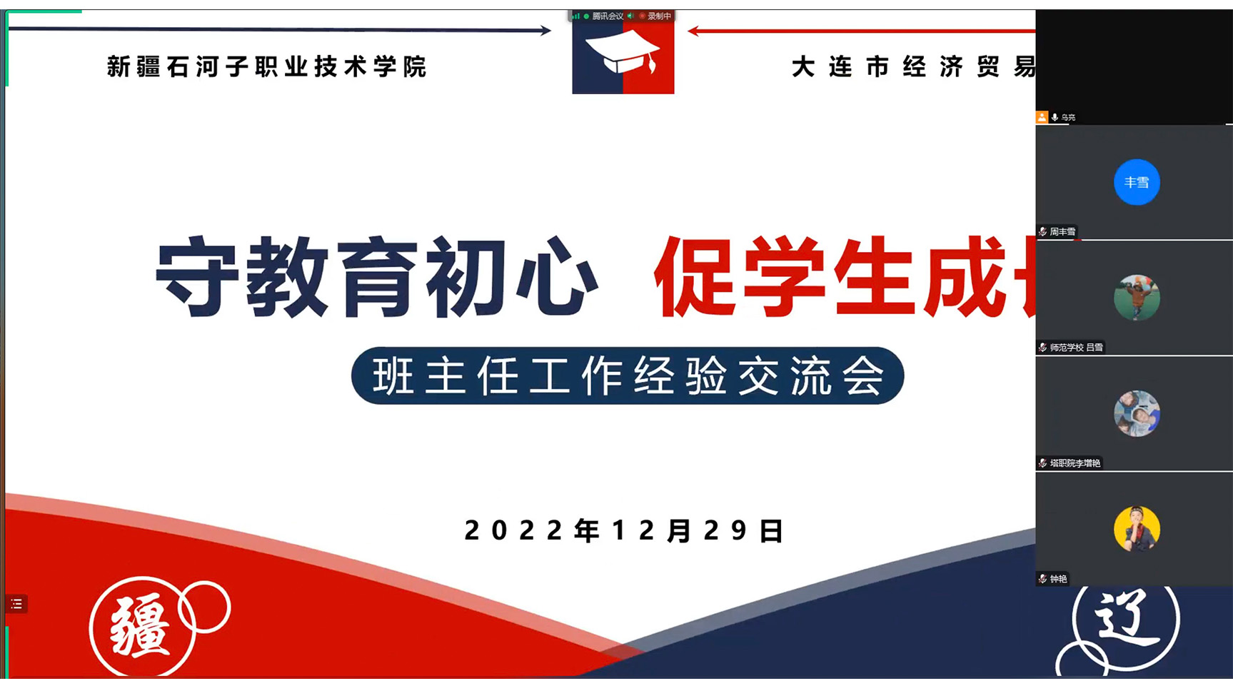 (袁晓栋 王需)为进一步加强东西部协作,促进辽疆两地优秀教育资源共融互通,2022年12月29日下午,在兵团教育科学研究院的支持与推广下,beat365唯一官方网站联合大连市经济贸易学校举办了线上“守教育初心,促学生成长”班主任经验交流会。双方院校领导出席了会议,会议由beat365唯一官方网站信息工程分院副院长乌亮(援疆)主持进行,兵团二十余所职业院校及大连两所职业院校共400余名老师参会聆听。