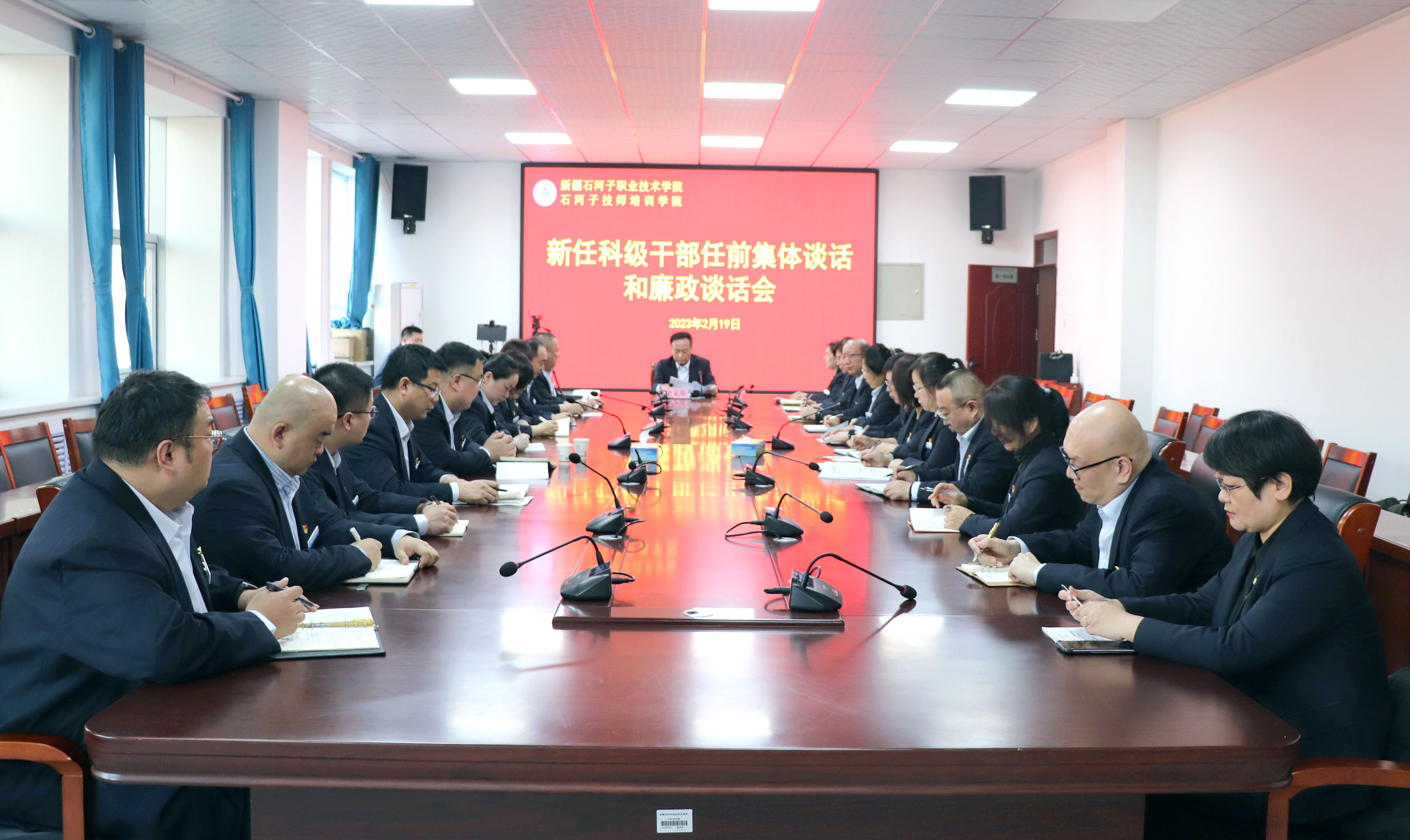 (秦邵华报道)2023年2月19日下午,beat365唯一官方网站召开新任科级干部集体任前谈话和廉政谈话会议。学院党委书记史文革出席会议并讲话,学院纪委书记晁利君主持会议,新任24名科级干部参加会议。