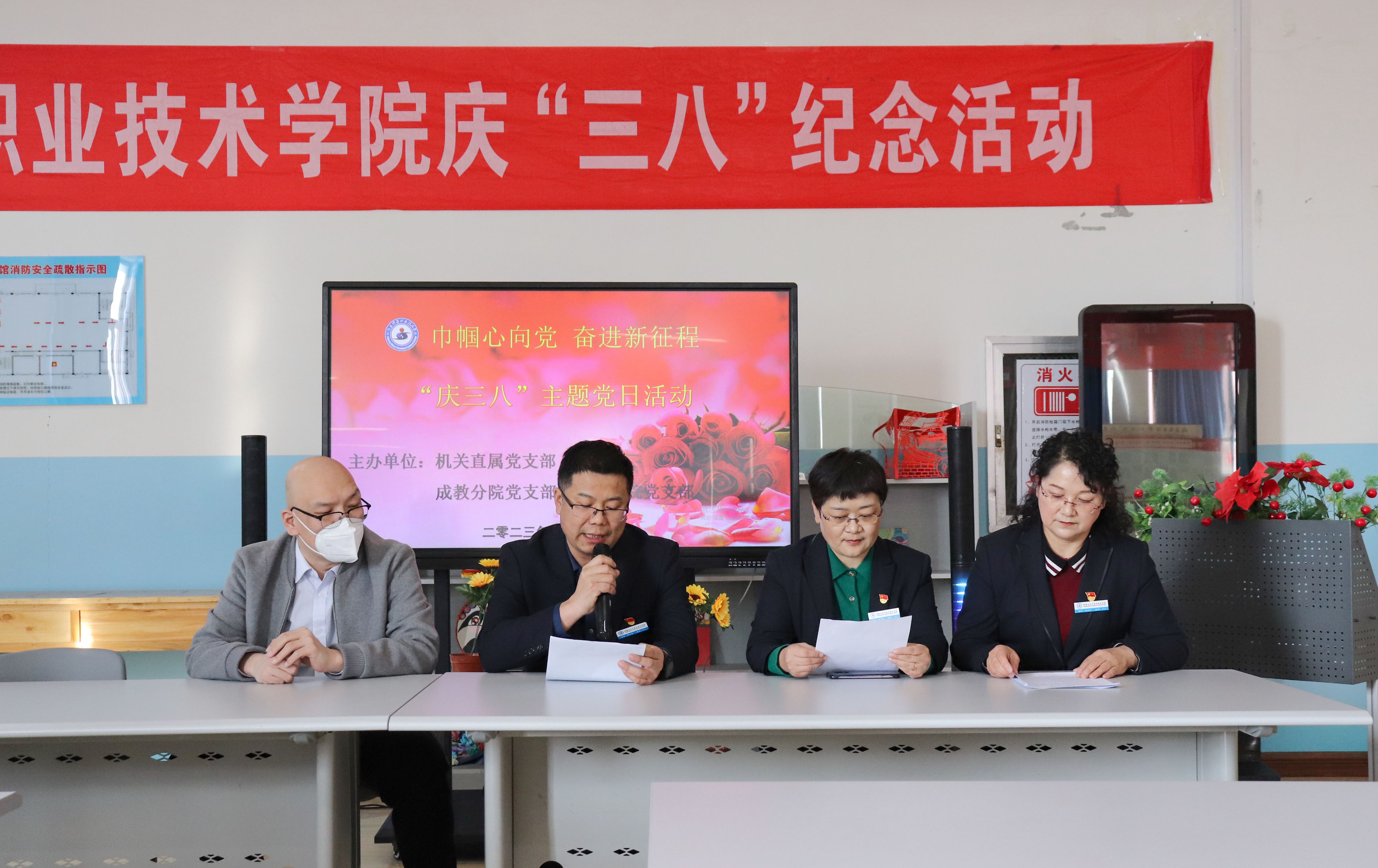机关直属党支部书记张金果代表机关支部向广大女同胞们致以节日的问候和衷心的祝福。他表示此次活动学院工会、女工委是以深入学习宣传贯彻习近平新时代中国特色社会主义思想为根本,结合师市妇联、总工会女工委工作要求,组织开展的“六个一”主题联谊活动,希望通过此次活动,展现学院新时代女性的魅力与风采,实现“半边天”的巾帼担当。