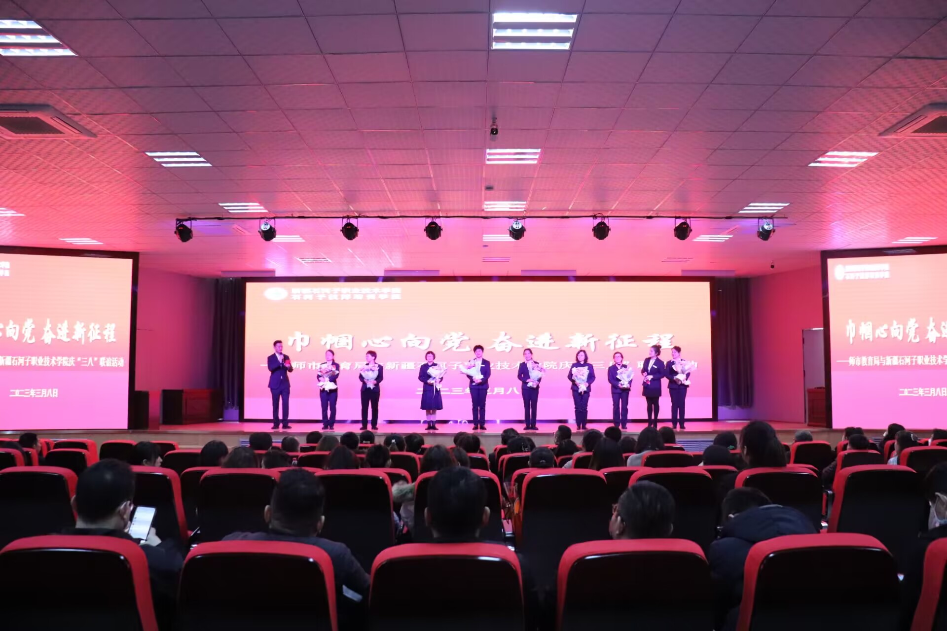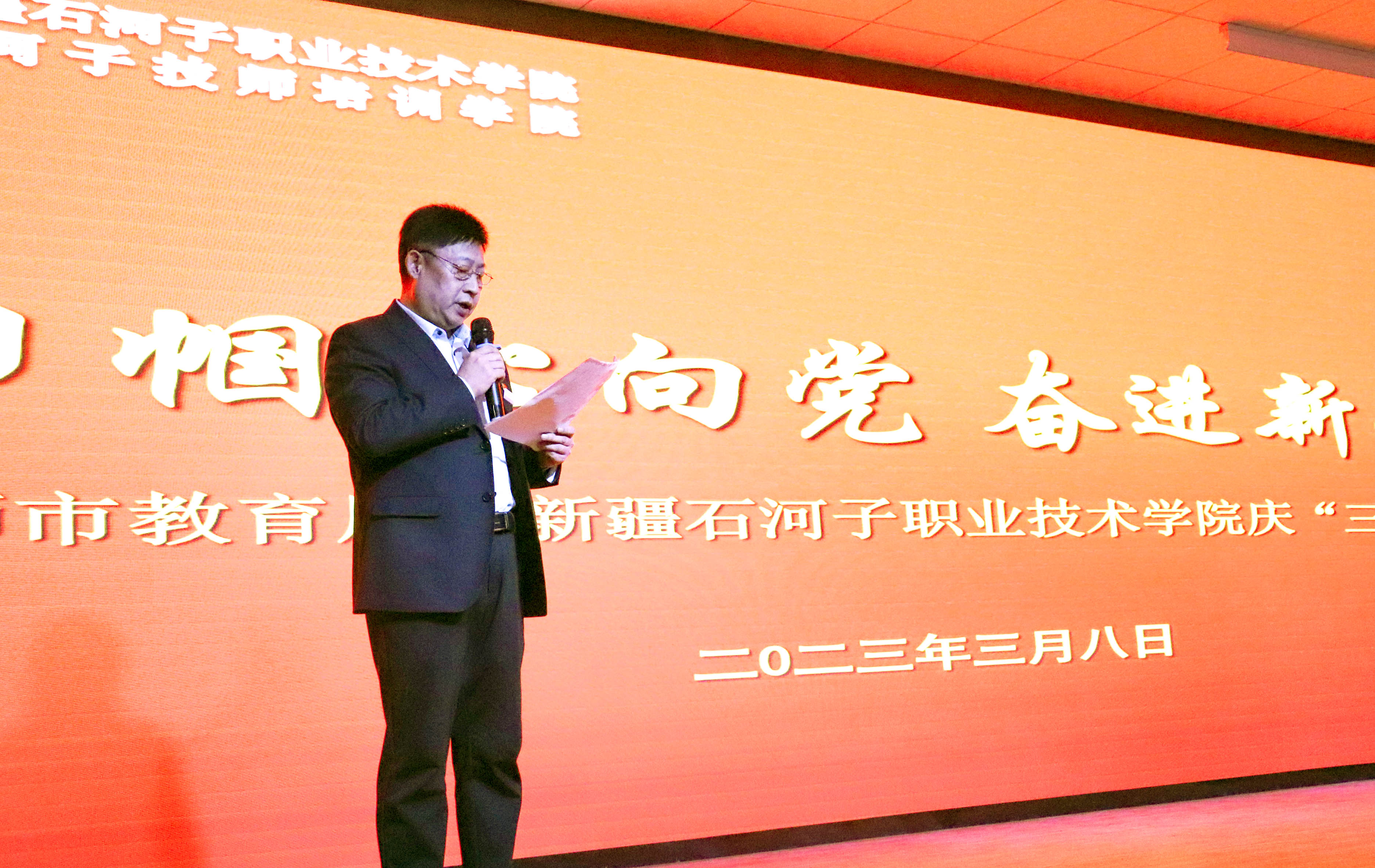 接着,学院院长林炯受学院党委嘱托,向师市教育局各位女同胞及学院广大女教职工致以诚挚的问候和节日的祝福。林院长肯定过去,总结现在,展望未来,希望全体女教职工在工作和生活中砥砺奋进,做社会发展的推动者;崇德向善,做中华美德的传承者;提升素养,做知性修身的践行者,绽放无愧于时代的璀璨芳华。