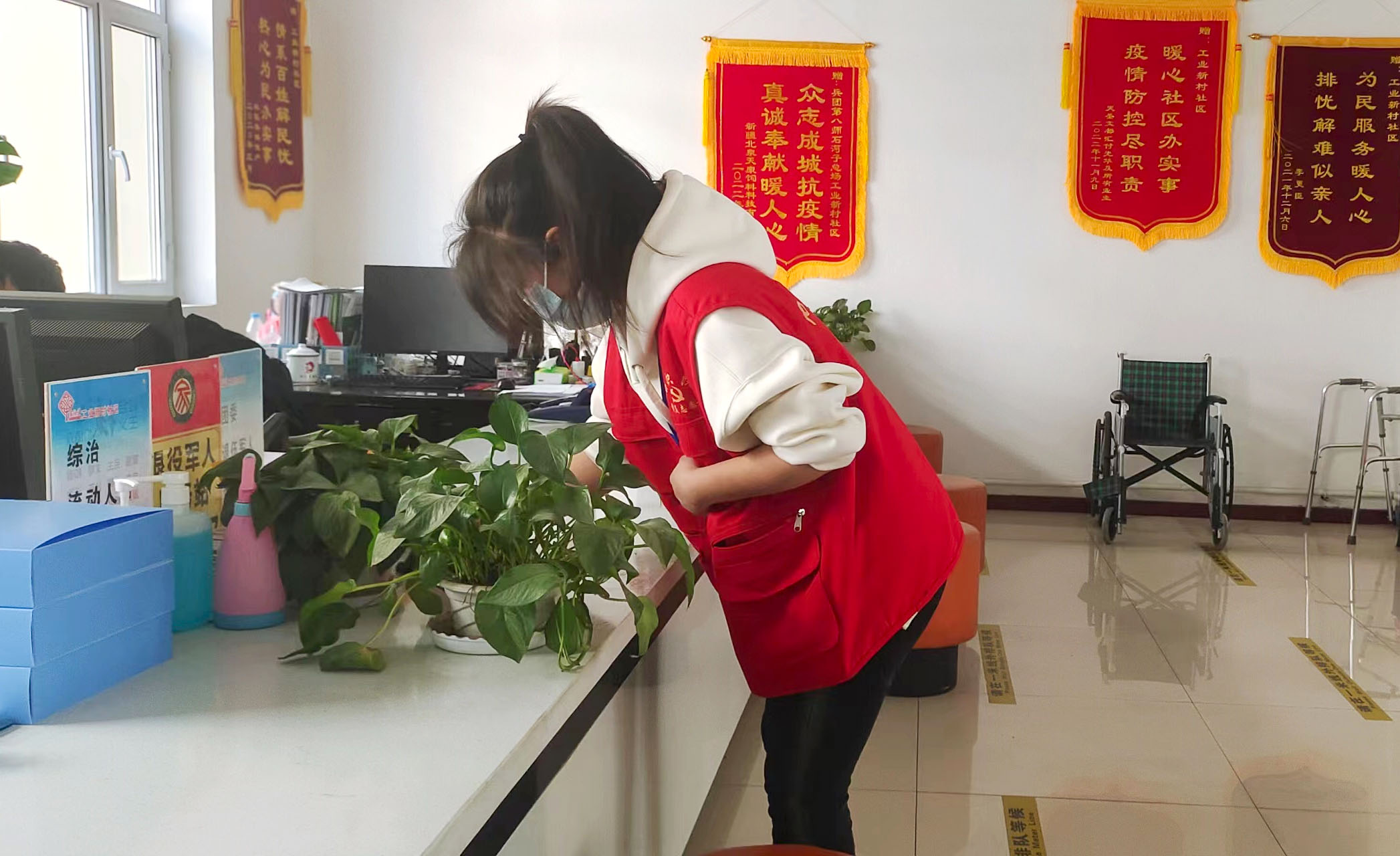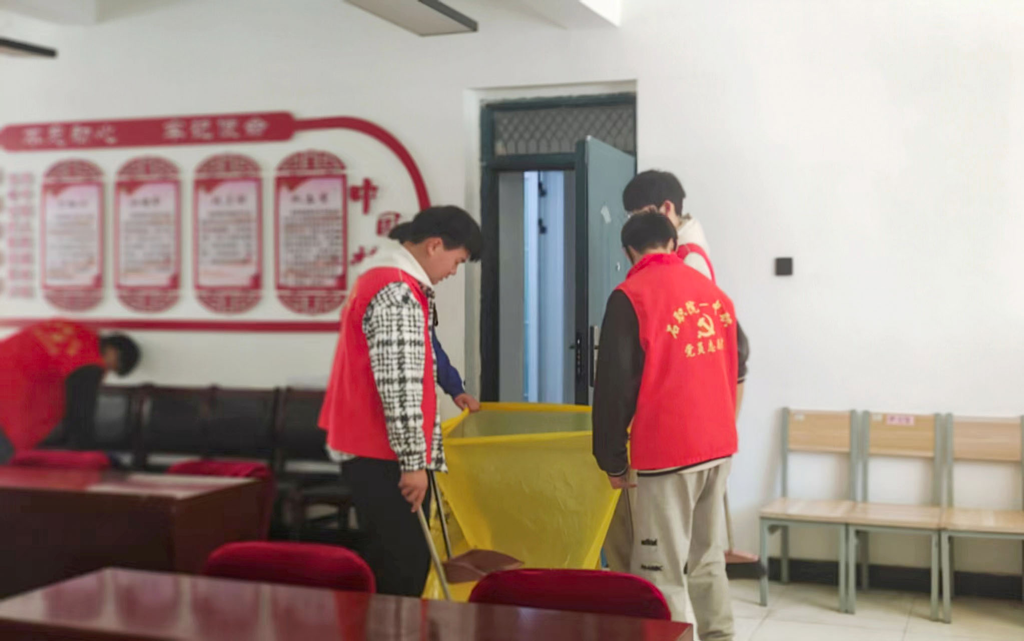 活动中,身穿红马甲的志愿者们充分发扬吃苦耐劳的精神,分工协作,用扫帚、卫生夹等清洁工具仔细清扫地面卫生死角、捡拾绿化带白色垃圾、擦拭桌面、整理杂物,有效维护了社区环境的干净整洁。并得到社区居民的一致好评。