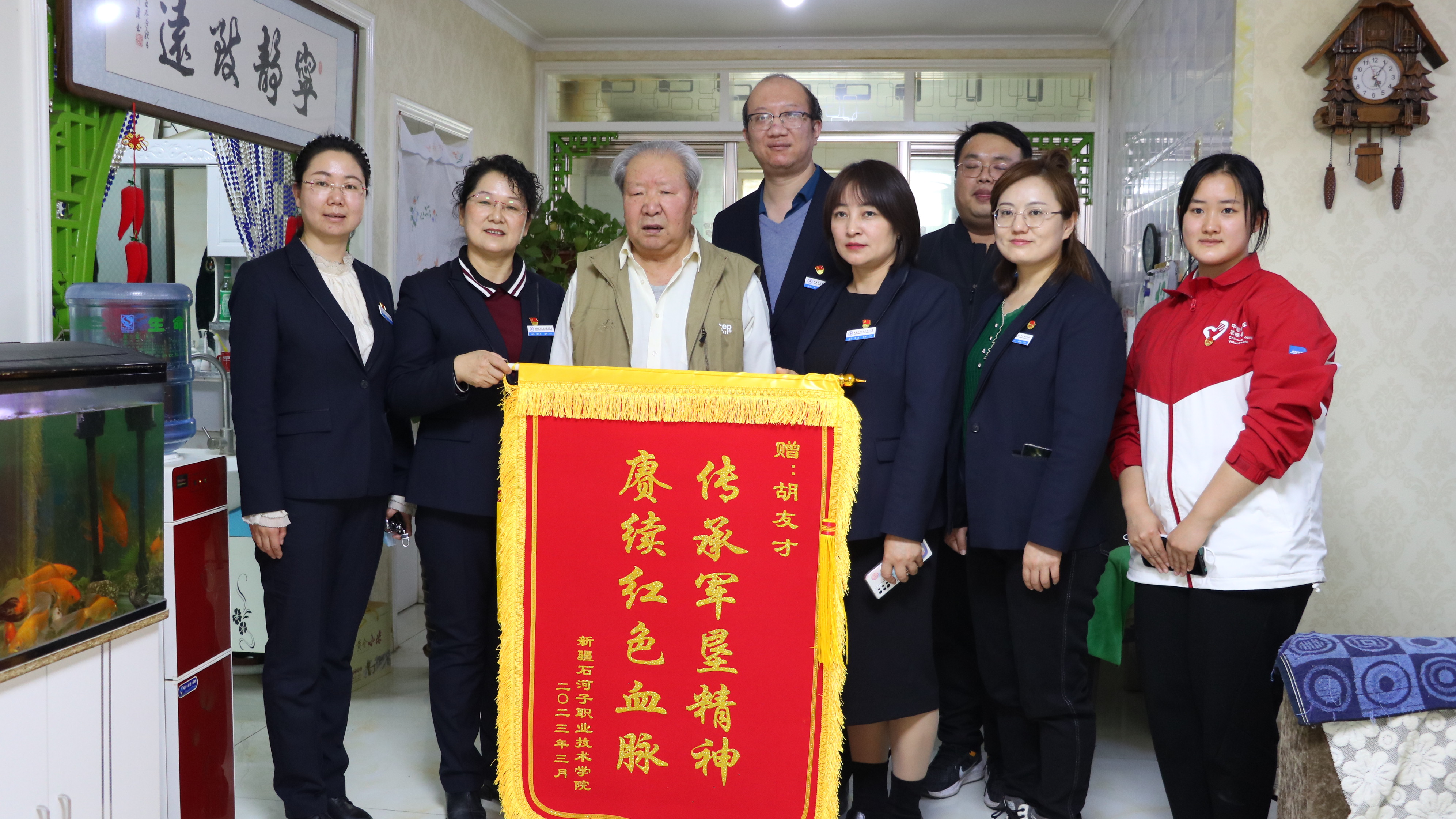 寻访活动第四站,在22-2社区党员活动室,师生与兵团抗疫先锋22-2社区主任夏中华、退休党员党支部书记刘华、新疆百名优秀收藏家鲁国平、军垦第一连讲解员王淑军老师开展弘扬兵团精神、学习雷锋精神主题座谈。王淑军老师,退休前是军垦第一连职工,退休后义务担当军垦第一连讲解员,是二代军垦人中的优秀代表。作为“军垦活化石”胡友才老连长军垦精神传承人,她跟着胡连长学打快板弘扬兵团精神,讲述军垦故事,为弘扬军垦精神,默默奉献,是职院师生学习的榜样。王淑军老师深情寄语师生,“军垦故事是要用满腔热情和饱满深情去讲述,这才是对老兵的敬意。”
