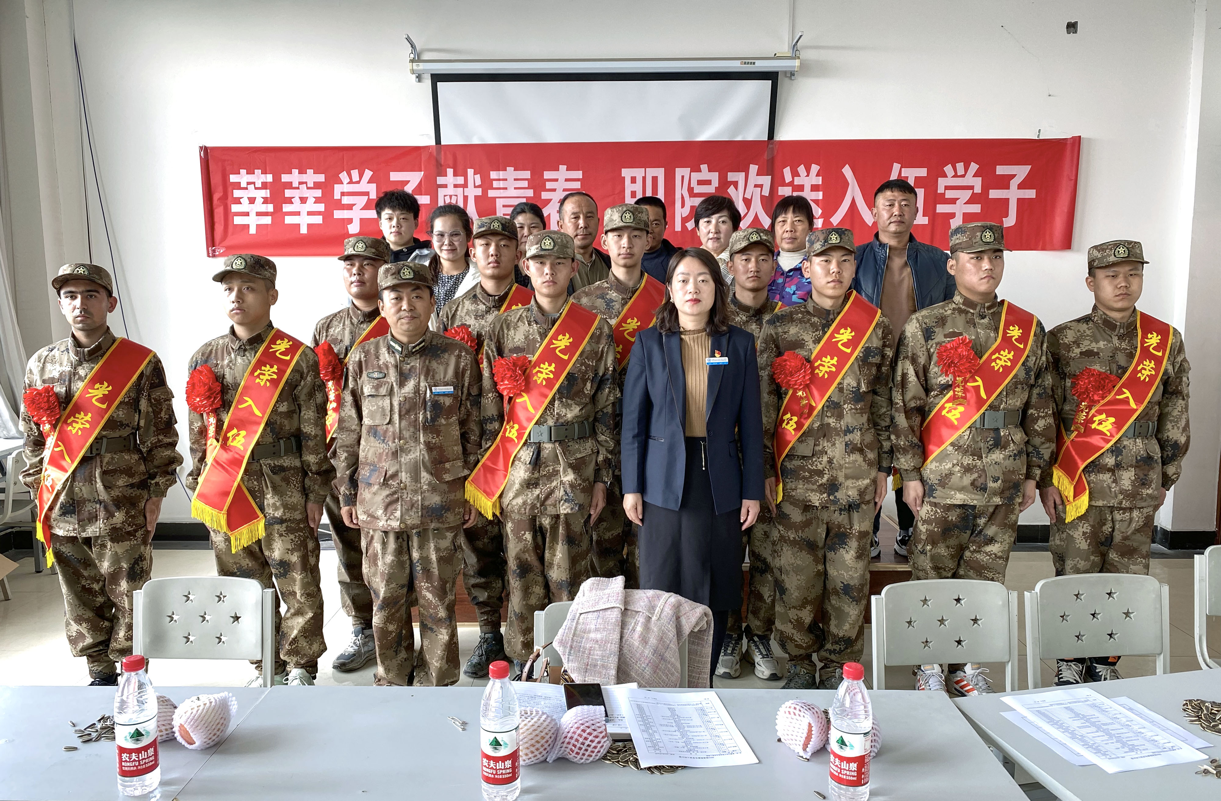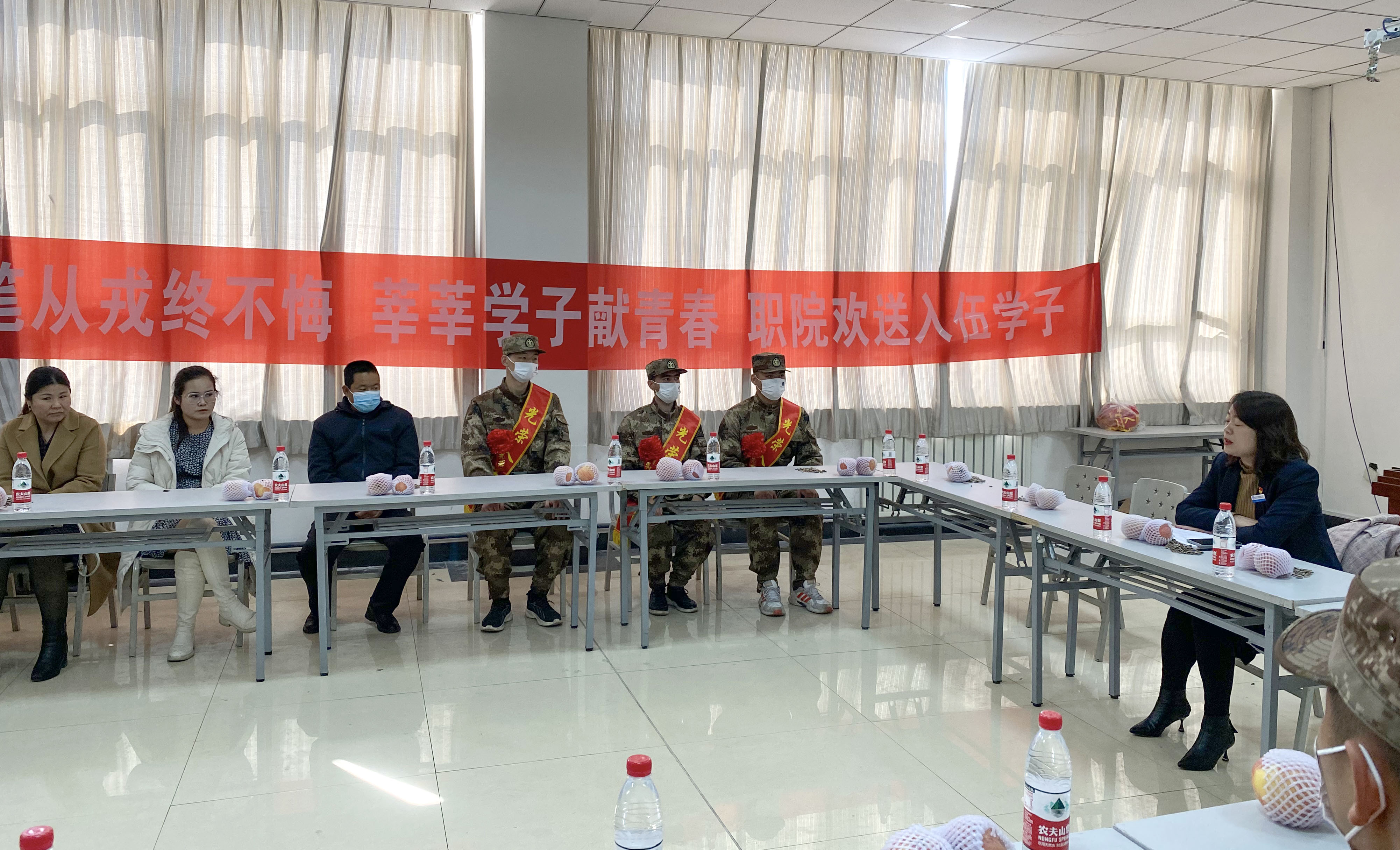 (房明报道)3月15日上午,在师市民兵训练基地举行学院2023年春季应征入伍同学欢送会。副院长马彩梅、征兵办相关工作人员、10名入伍大学生及部分学生家长参加会议。