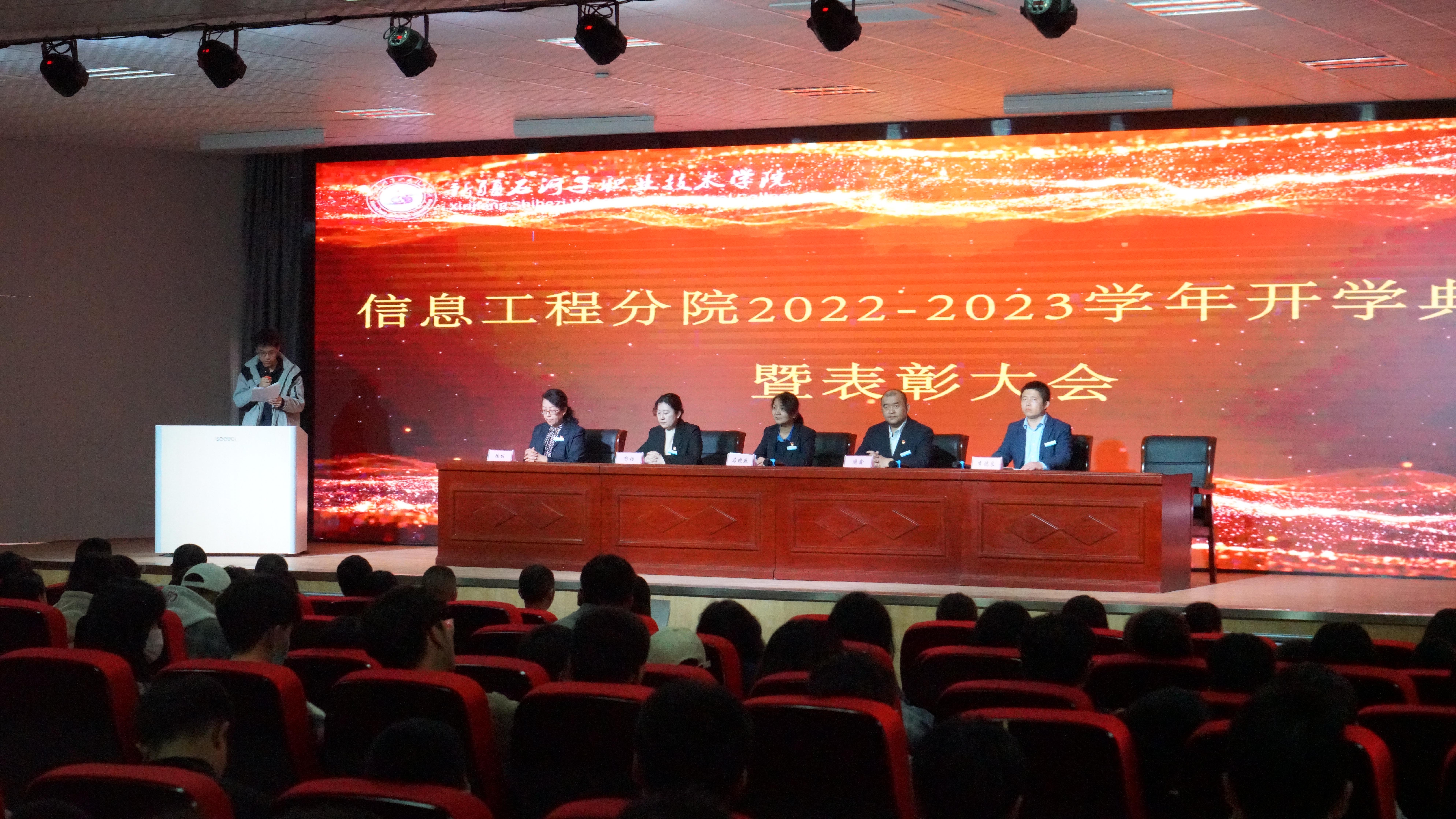 (崔安琪报道)伴着初春的脚步,迎着和煦的春风,2023年3月23日下午,信息工程分院2022—2023学年开学典礼暨表彰大会在行政北副楼301教室隆重举行。
