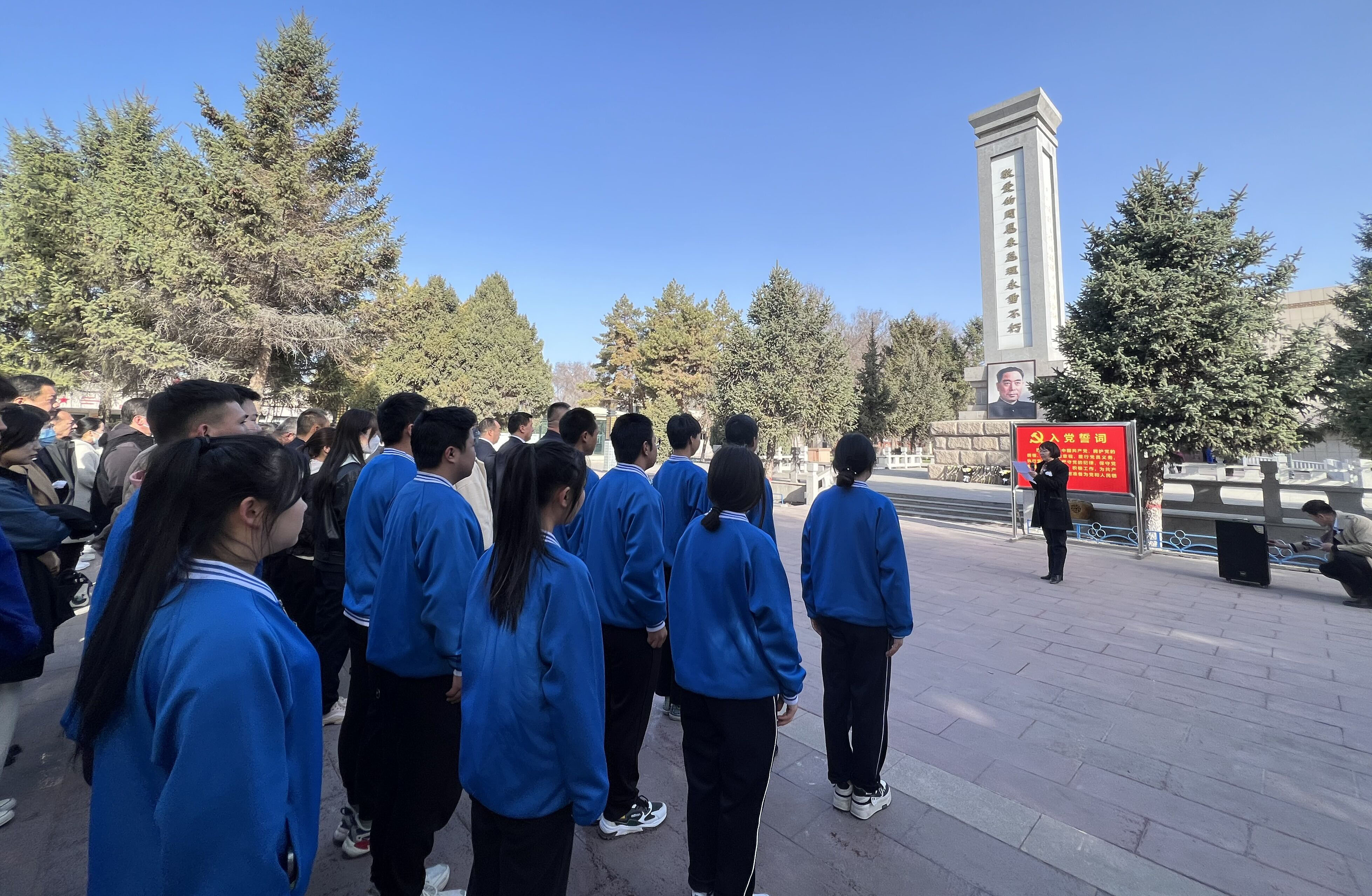 纪念馆内松柏苍翠掩映,周总理纪念碑高高耸立,庄严肃穆。两校师生260人代表整齐列队,玛纳斯中等职业技术学校党支部书记王浩对本次活动致词,两校教师代表敬献鲜花,师生致三鞠躬礼,向周总理致以最崇高的敬意和哀思。在中职分院党总支书记吴晓晖的带领下,全体成员毅然有力举起右拳重温入党、入团誓词,目光炯炯澄澈凝视纪念碑,誓言铿锵有力。随后两校师生跟随讲解员一起在纪念馆内参观,追寻英雄足迹,回顾峥嵘岁月。看着一幅幅周总理与人民群众的珍贵录像及照片,在讲解员细心的讲解中,师生们看到了周总理全心全意为人民服务的身影,真切感受到了中华民族的传统美德与马克思主义革命人生观的完美结合。
