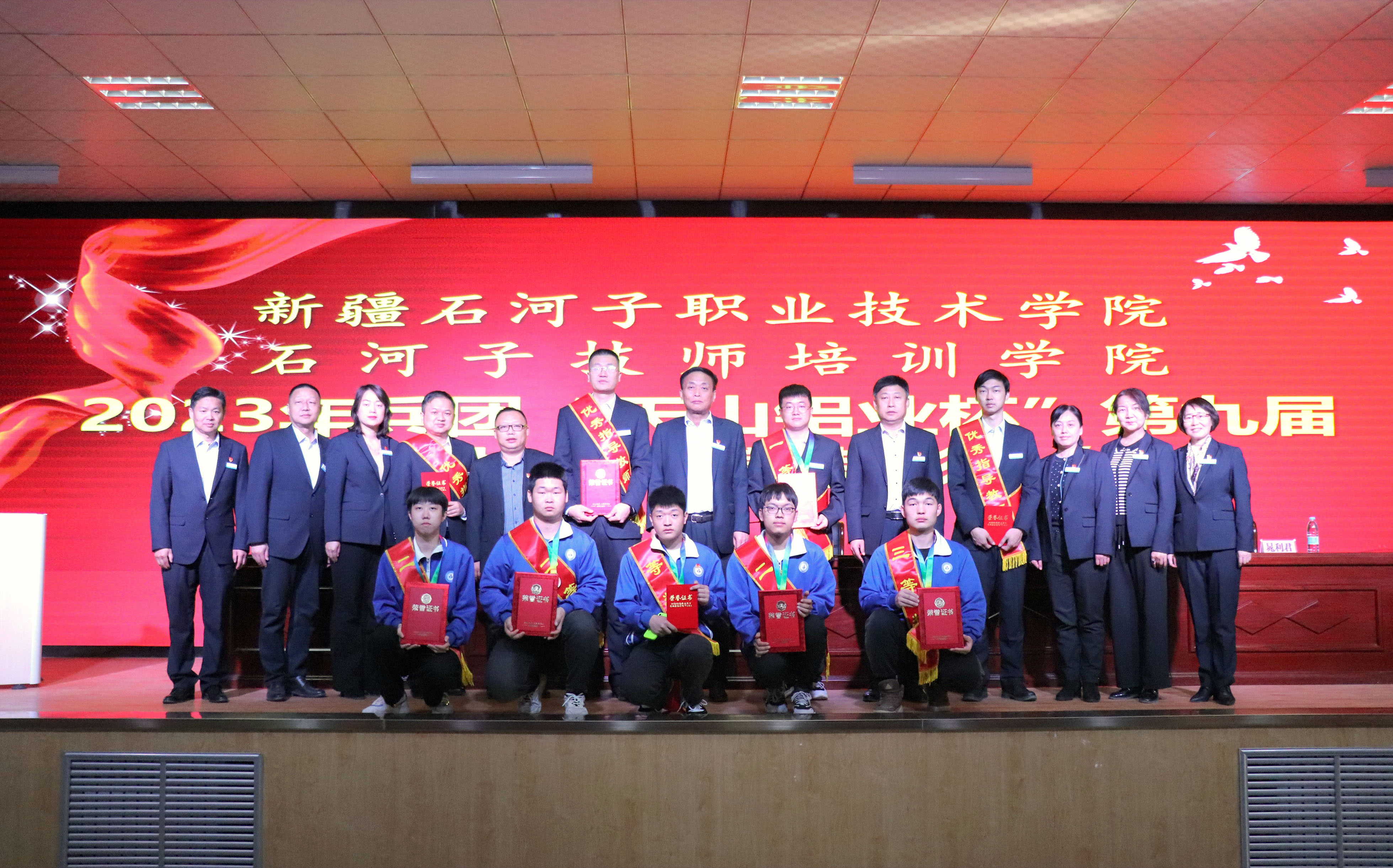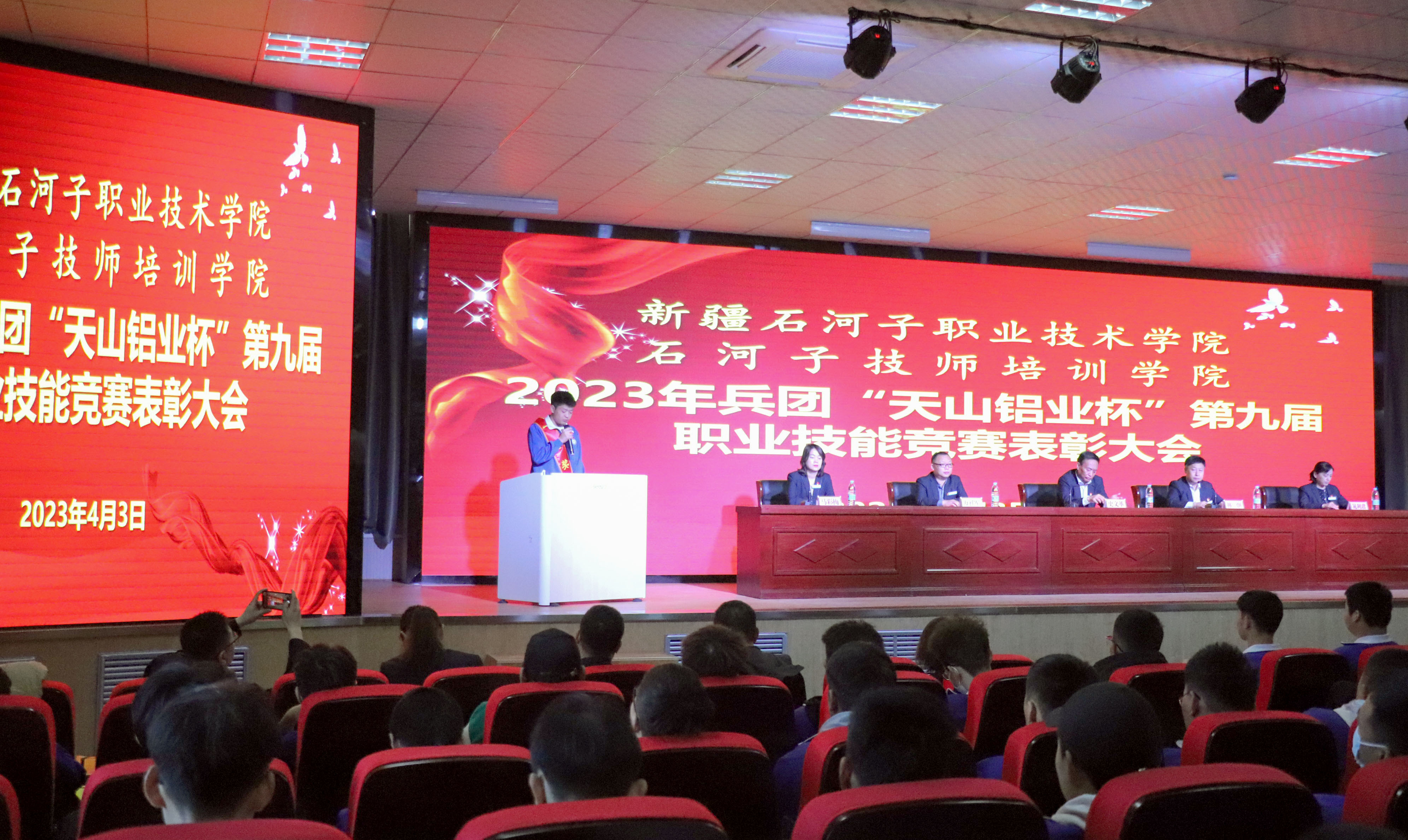 (程琛报道)2023年兵团“天山铝业杯”第九届人社系统职业技能大赛胜利落下帷幕,beat365唯一官方网站院师生斩获佳绩,此次赛事项目众多,赛事难度大,不仅为我院争光,也为八师添彩。4月3日,学院举行2023年兵团“天山铝业杯”第九届人社系统职业技能大赛表彰会,学院党委书记史文革、院长林炯、副院长万祥军、纪委书记晁利君、副院长马彩梅,各分院、部门的负责人及参加技能大赛的师生代表300余人参加了表彰大会。
