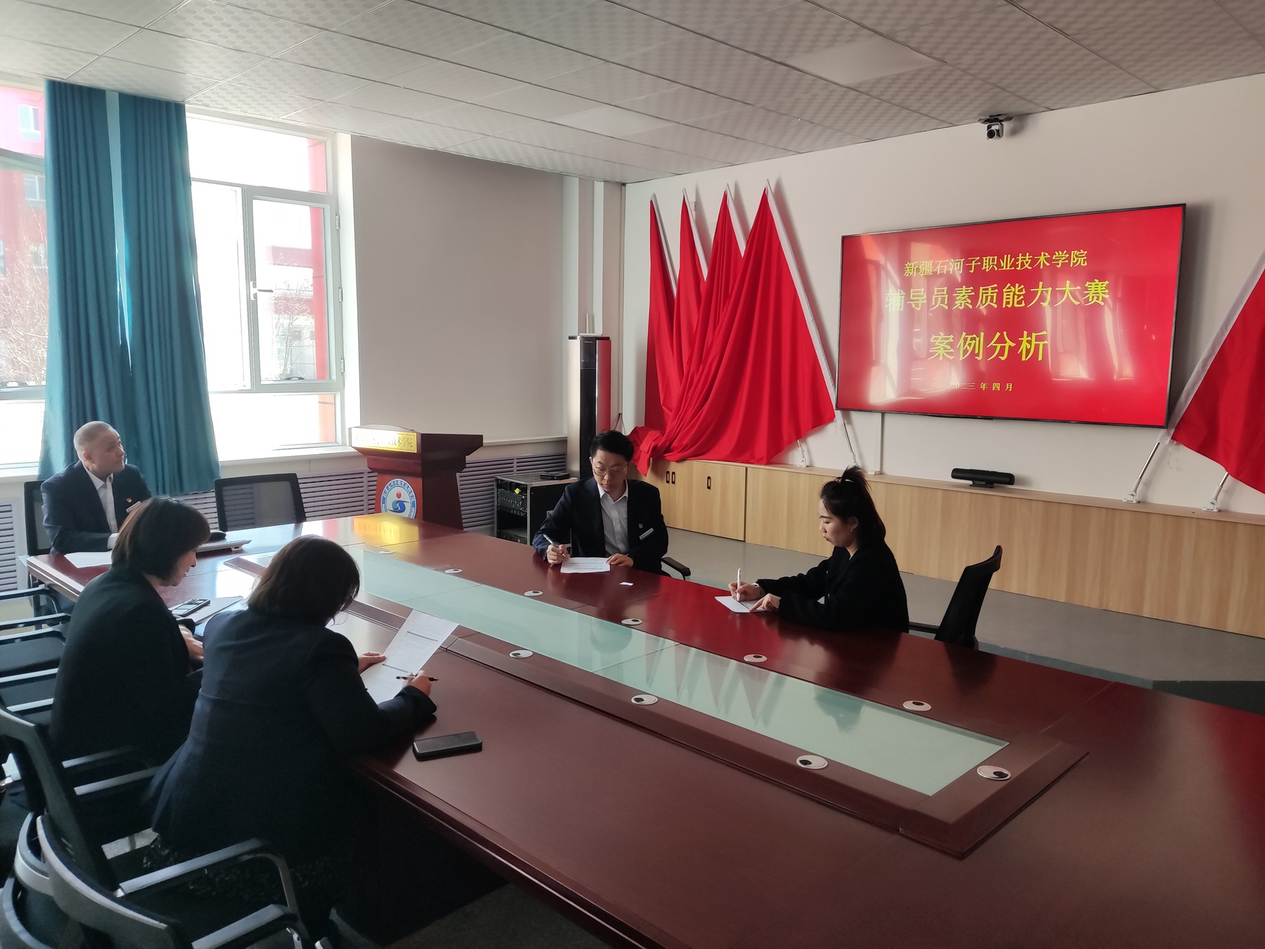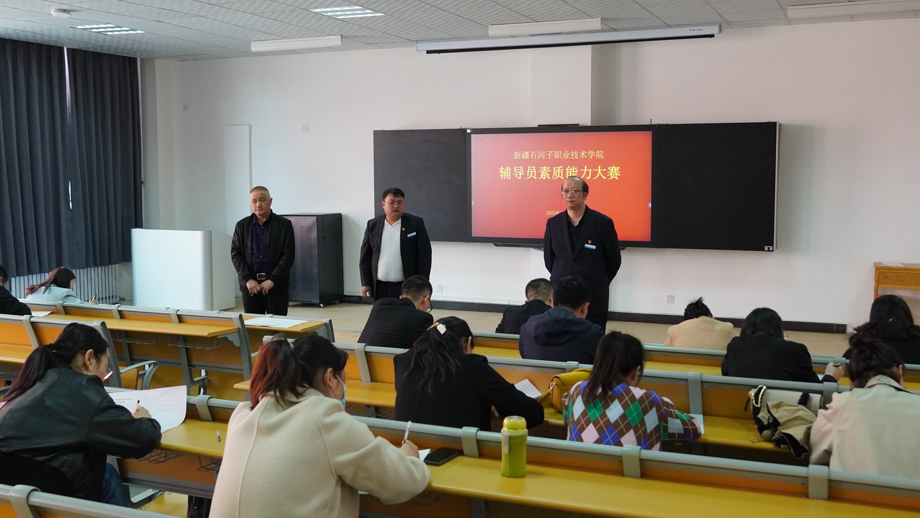 此次大赛严格对标国家、兵团辅导员素质能力大赛相关要求,通过基础知识笔试、案例分析、谈心谈话三个环节比试,综合考察辅导员对相关知识的掌握程度,对学生的教育引导能力、解决理论困惑和实际问题的能力等,对辅导员专业素质能力进行了多角度、全方位的测验。学院学生处将对本次大赛遴选出的优秀选手进行系统培训,组织参加6月份兵团辅导员素质能力大赛。