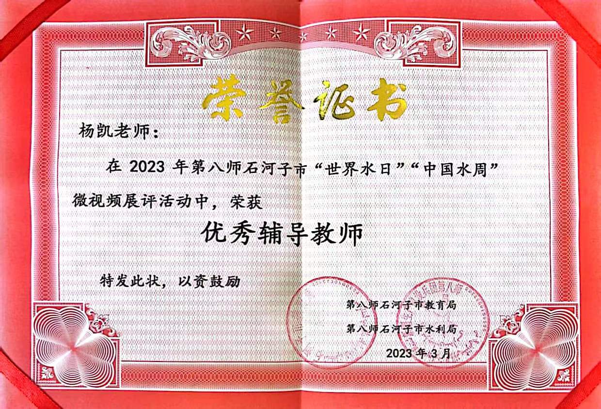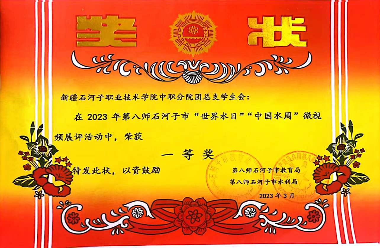 (中职分院学办供稿)在2023年3月22日师市第三十一届“世界水日”、3月22—28日第三十六届“中国水周”“水资源”展评活动中,beat365唯一官方网站中职分院团总支学生于佳丽同学获得微视频展一等奖,指导老师杨凯获得优秀辅导教师称号。