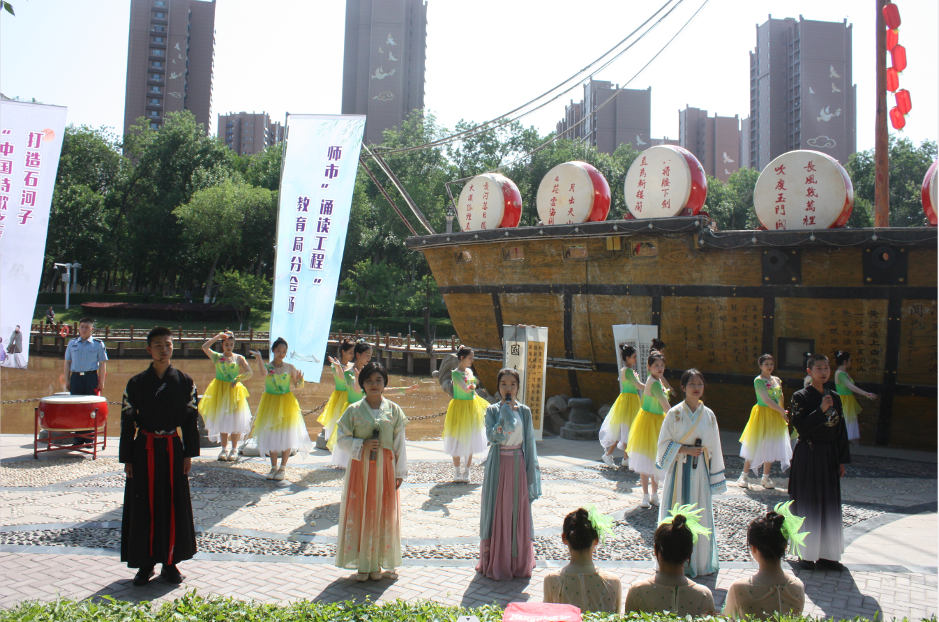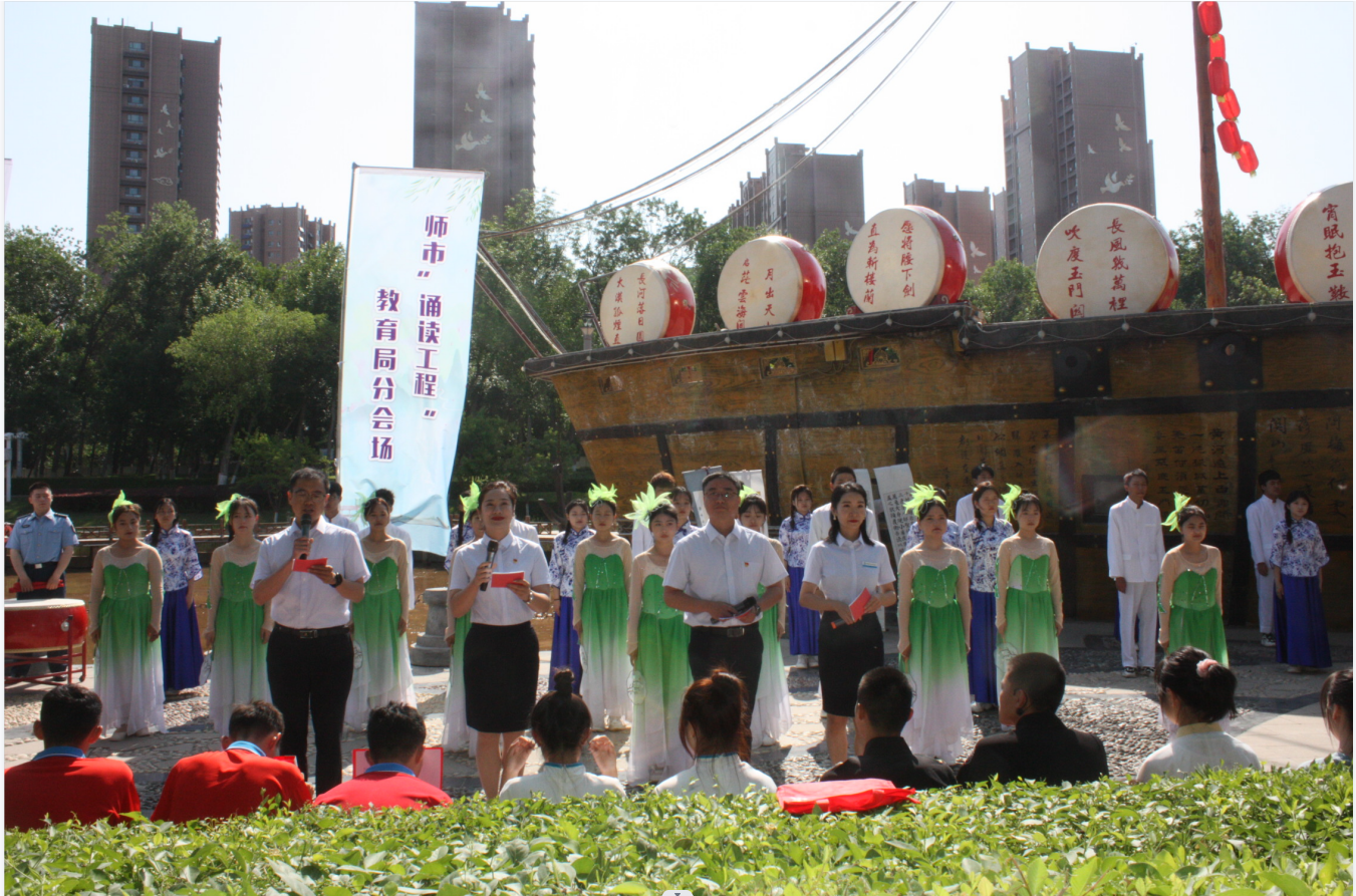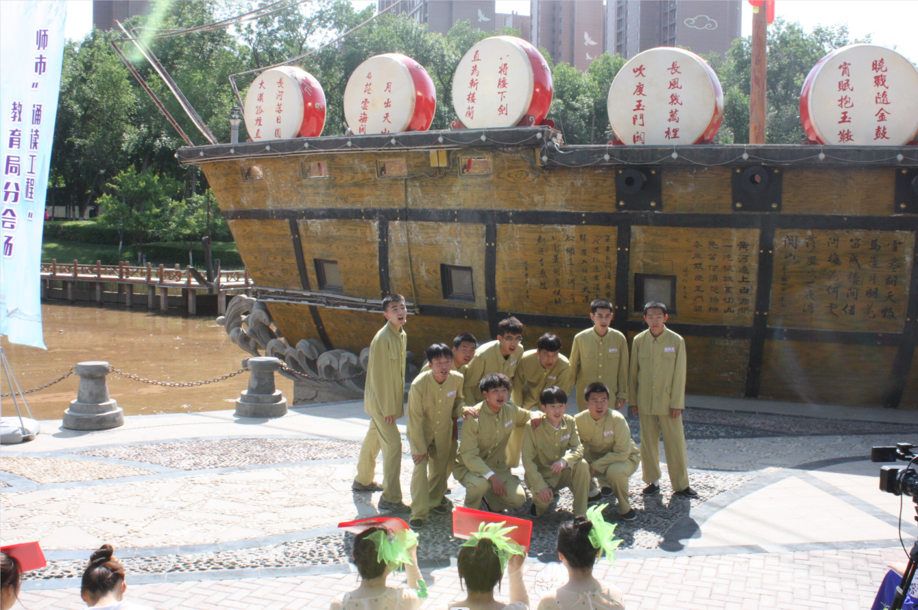 (王需 杨慧 袁晓栋报道)2023年5月27日上午,师市“诵读工程”教育系统分会场beat365唯一官方网站专场作为开场展示活动在明珠河主题公园开演,学院副院长张涛带领学院近200名师生参加了展示活动。