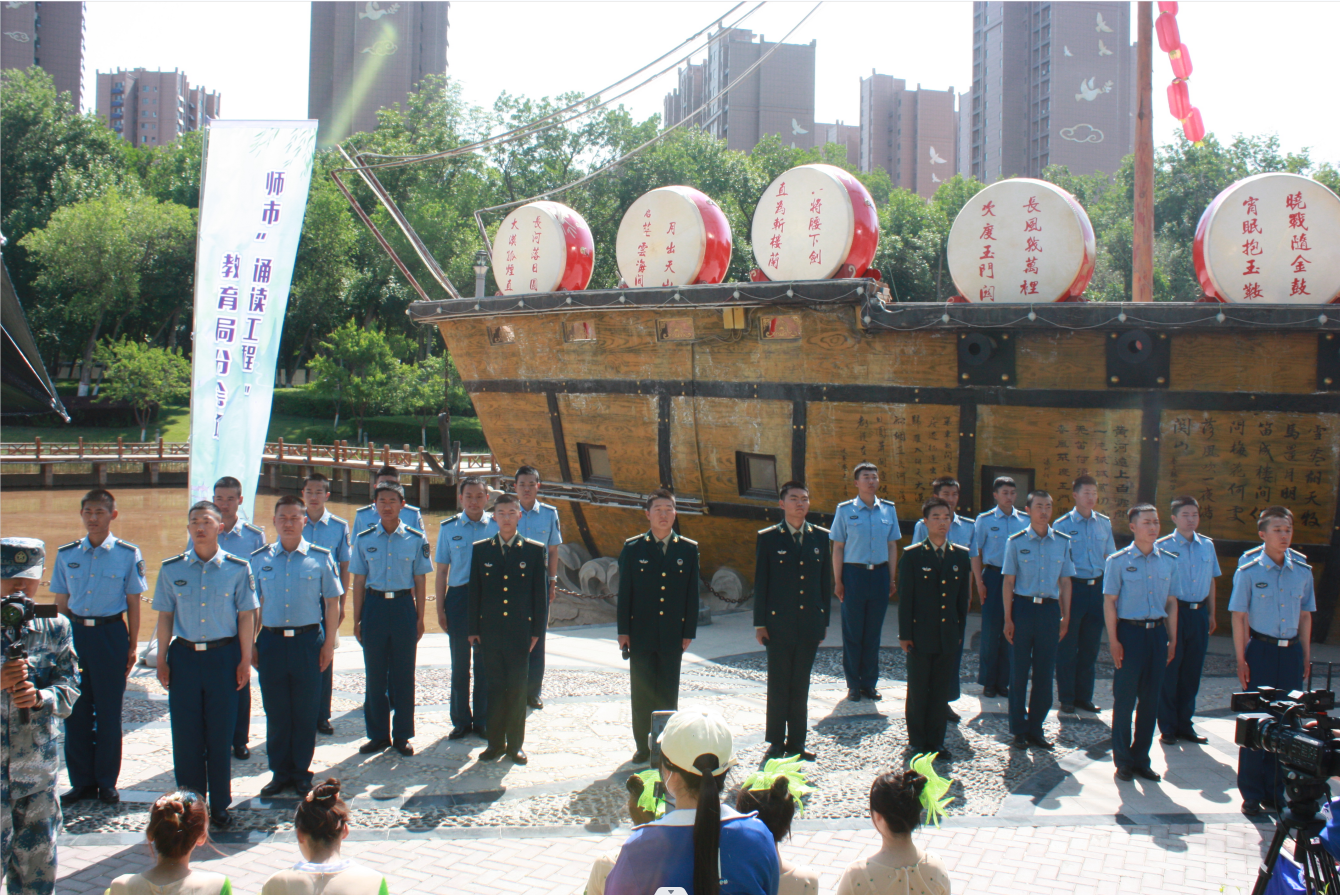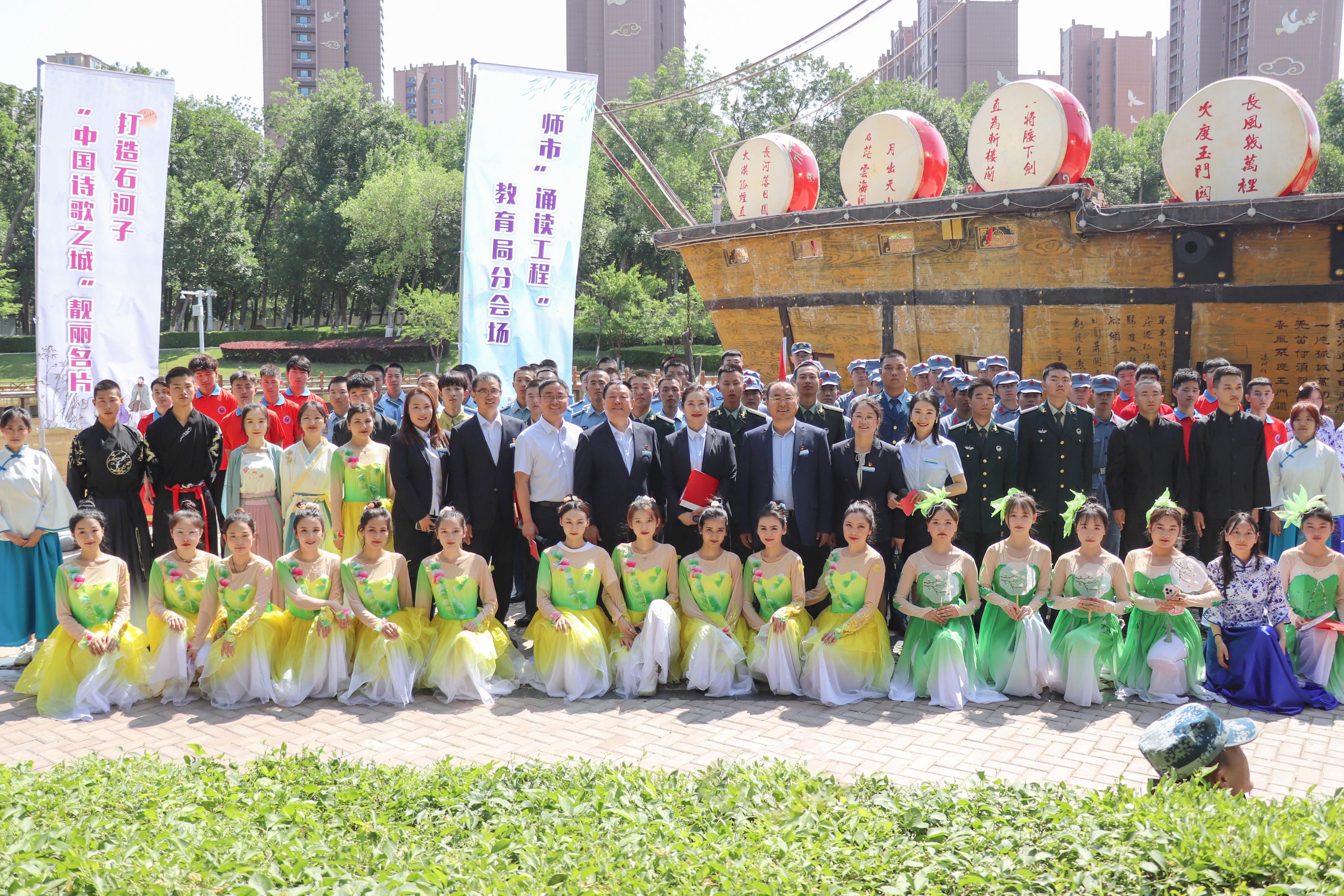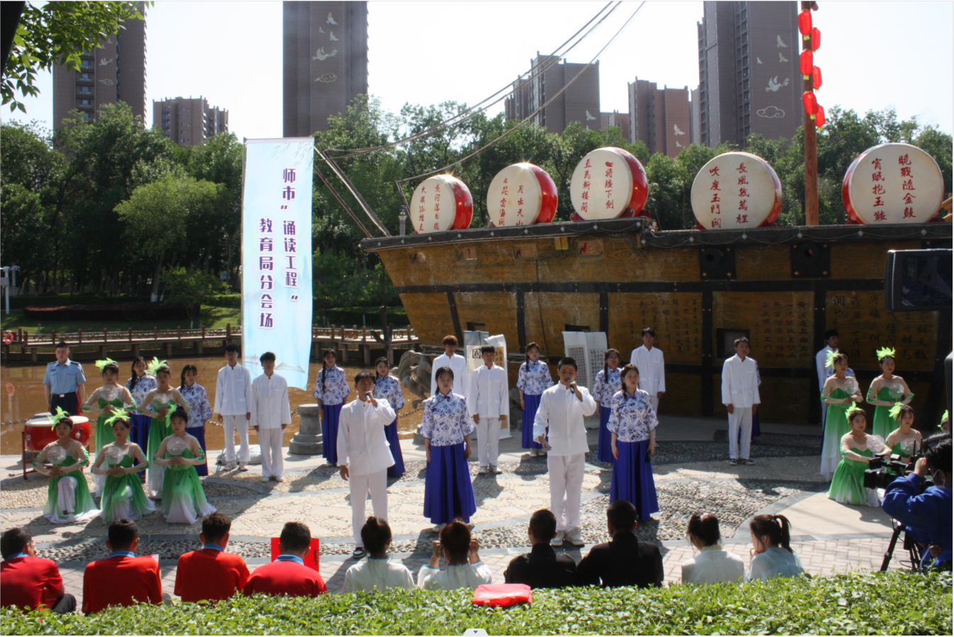 (王需 杨慧 袁晓栋报道)2023年5月27日上午,师市“诵读工程”教育系统分会场beat365唯一官方网站专场作为开场展示活动在明珠河主题公园开演,学院副院长张涛带领学院近200名师生参加了展示活动。