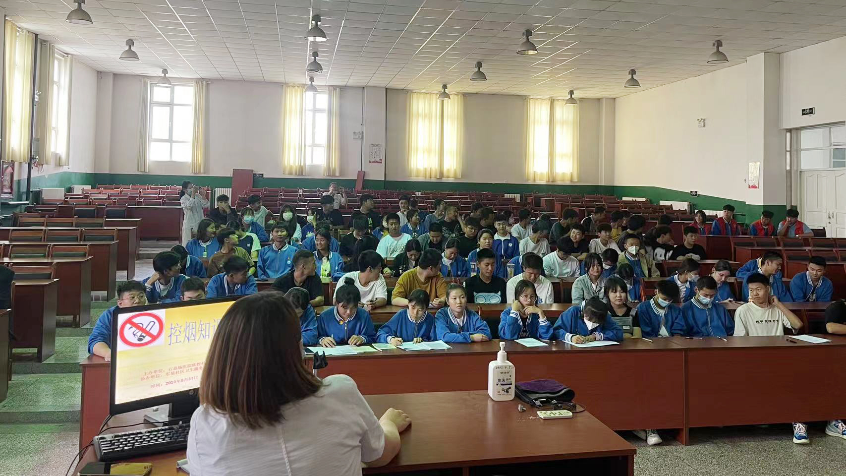 疾控中心医生从烟草发展的历史娓娓道来,结合形象生动的PPT展示,借助各类名人效应让学生感同身受地体会吸烟的危害性。从烟草所含的有害物质、吸烟引起的相关疾病、烟草流行对青少年带来的健康风险、二手烟对身体的危害以及戒烟的好处等着手讲解,最后还介绍了一些戒烟小知识。同学们认真听讲,并进行有效互动,取得了较好的宣讲效果。
