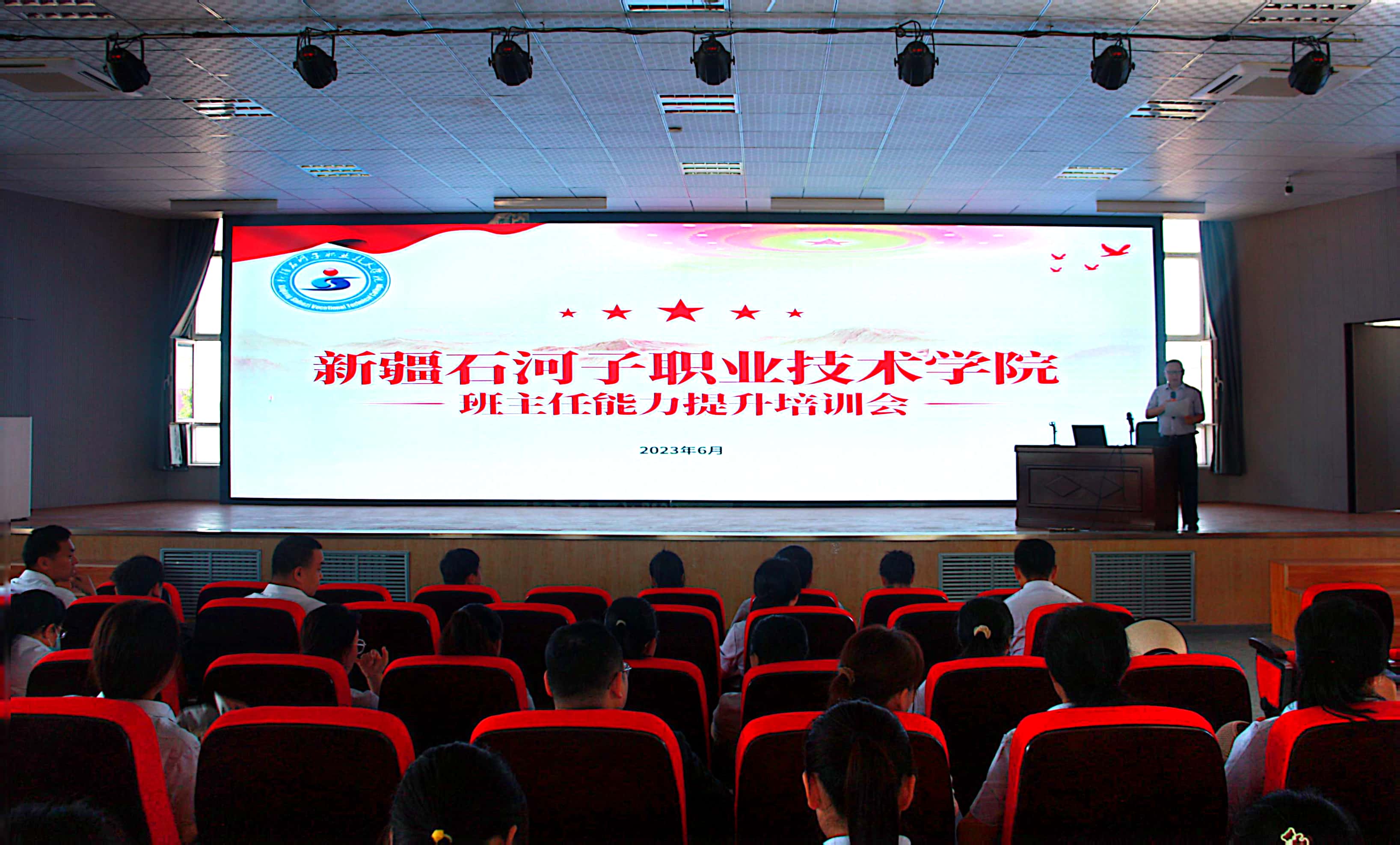 (王雅娟 报道)为落实教育部“三全育人”工作要求,构建十大育人工作体系,全面提升beat365唯一官方网站班主任的专业素养和带班育人能力,2023年6月10日,由兵团韩东名班主任、杨徐飞军号辅导员、张敏思政名师、殷波思政名师等工作室联合主办的班主任能力提升培训在行政楼南附楼三楼举行,学院副院长万祥军及200余名教师参加了培训。