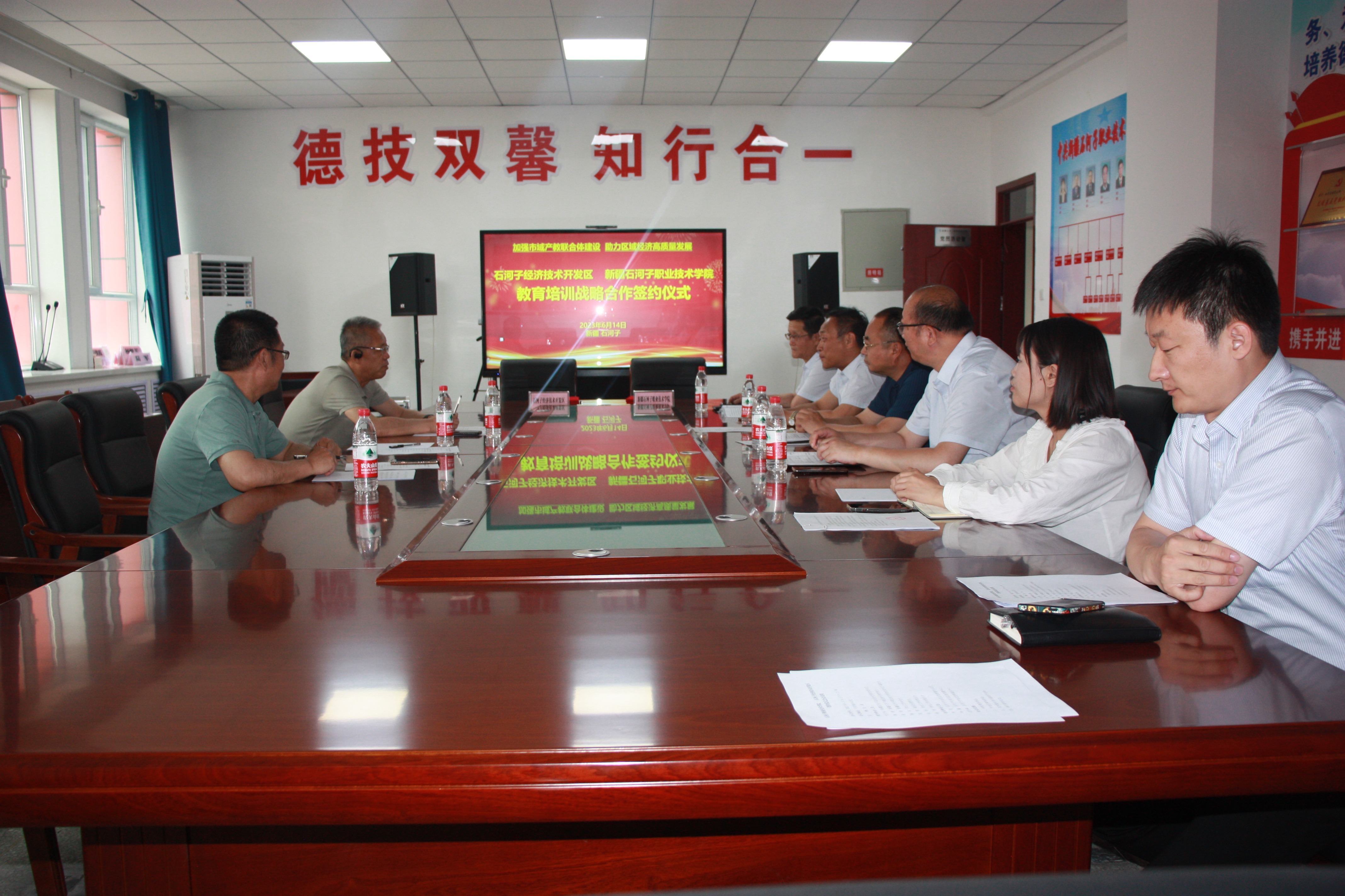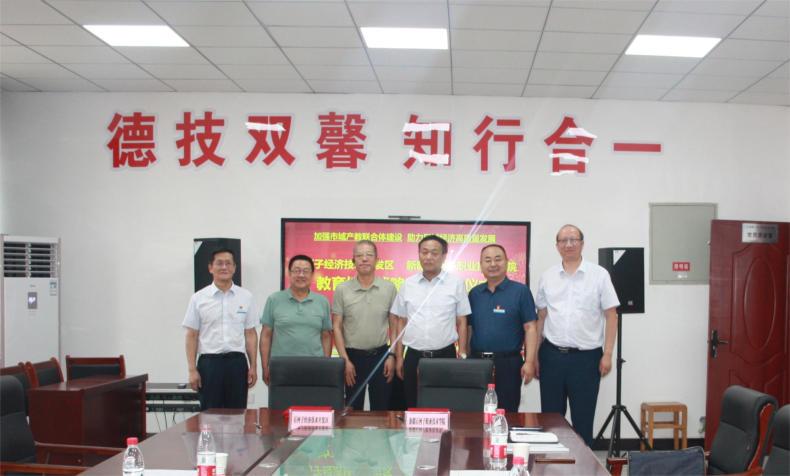 (杨慧 报道)为加强市域产教联合体建设,助力区域经济高质量发展,6月14日,石河子经济技术开发区与beat365唯一官方网站教育培训战略合作签约仪式在学院党员活动室举行,石河子开发区应急管理中心主任毕克,学院党委书记史文革、纪委书记张涛出席,纪委书记张涛主持签约仪式。