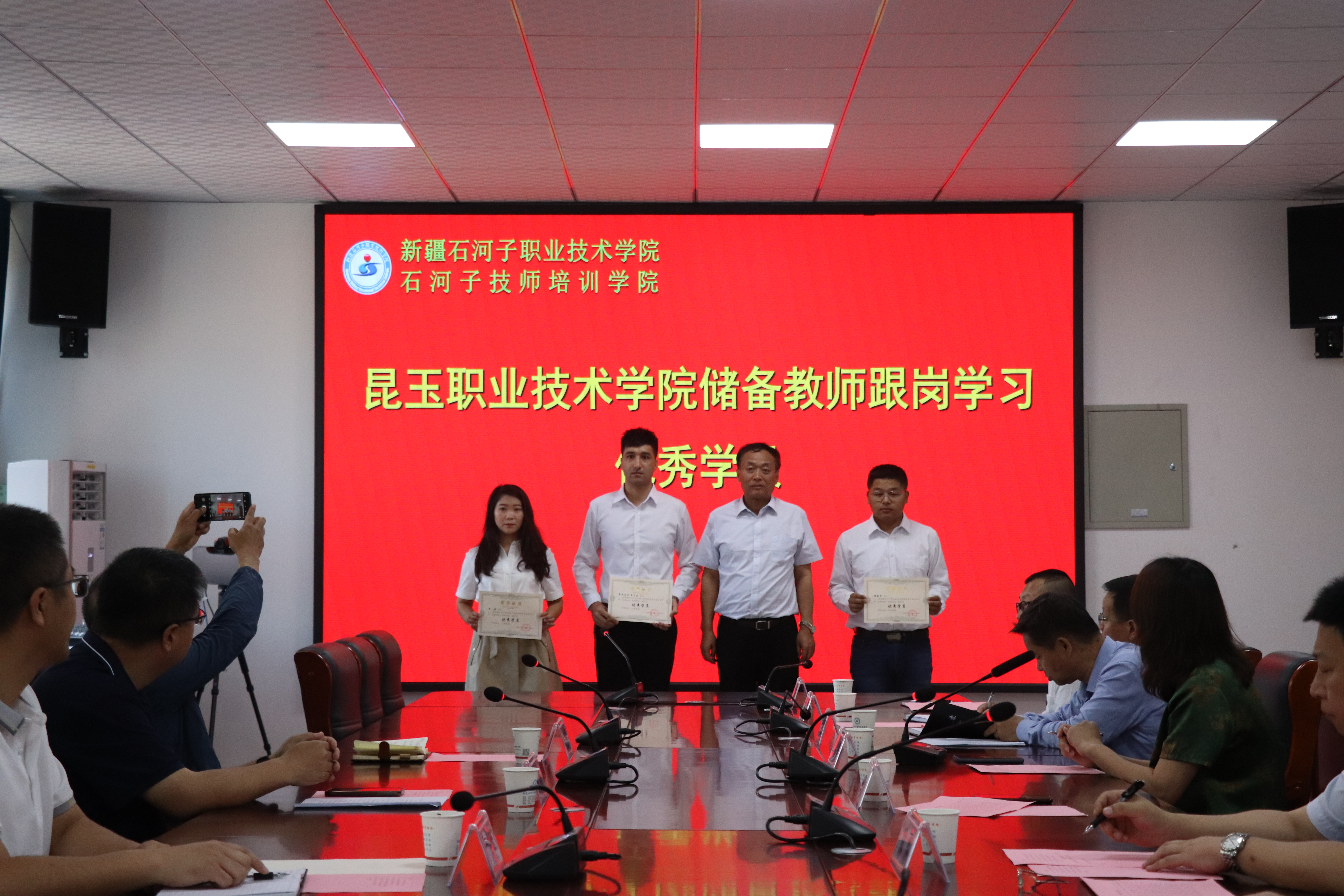 会上,学院副院长马彩梅对此次13名储备教师跟岗学习期间开展的教学示范课、教学指导、教学观摩与研讨、集体备课、基本功训练等学习情况进行了汇报。全体参会人员共同观看昆玉职业技术学院储备教师跟岗学习视频,林炯院长和师扬副局长为13名储备教师颁发结业证书。