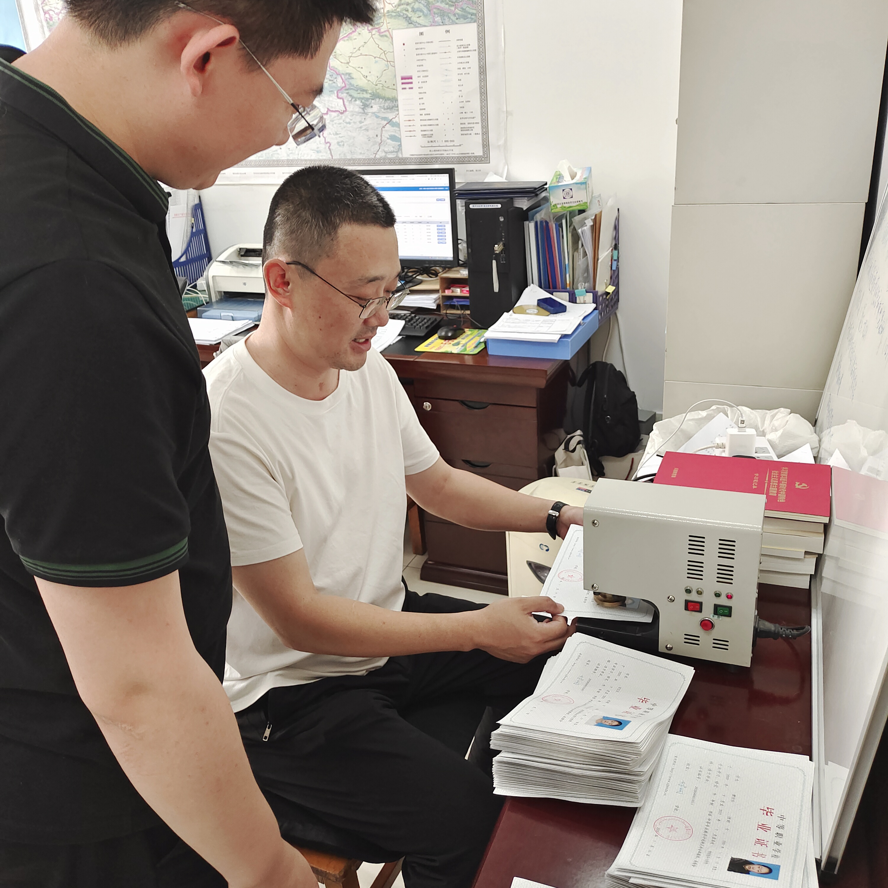 (徐皓报道)2023年6月时值毕业季,学生学籍学历管理、毕业生证书制发工作紧锣密鼓的开展。6月15日,兵团职业院校毕业证验印工作在乌鲁木齐市兵团教育局展开,兵团22个职业院校共计完成8200余份毕业证的验印,其中beat365唯一官方网站本次校验678份毕业证,所提供的新生登记表、毕业生验印登记表和毕业证书经查验无一处错误,一次性全部通过,受到兵团教育局职成处李媛媛处长高度赞扬,在全兵团系统表扬并号召其它院校学习借鉴。