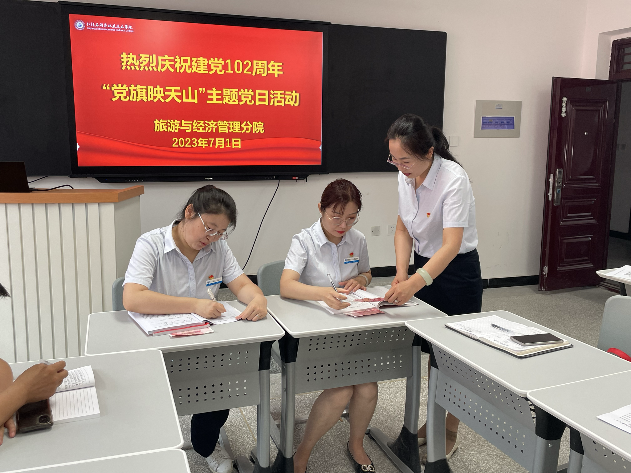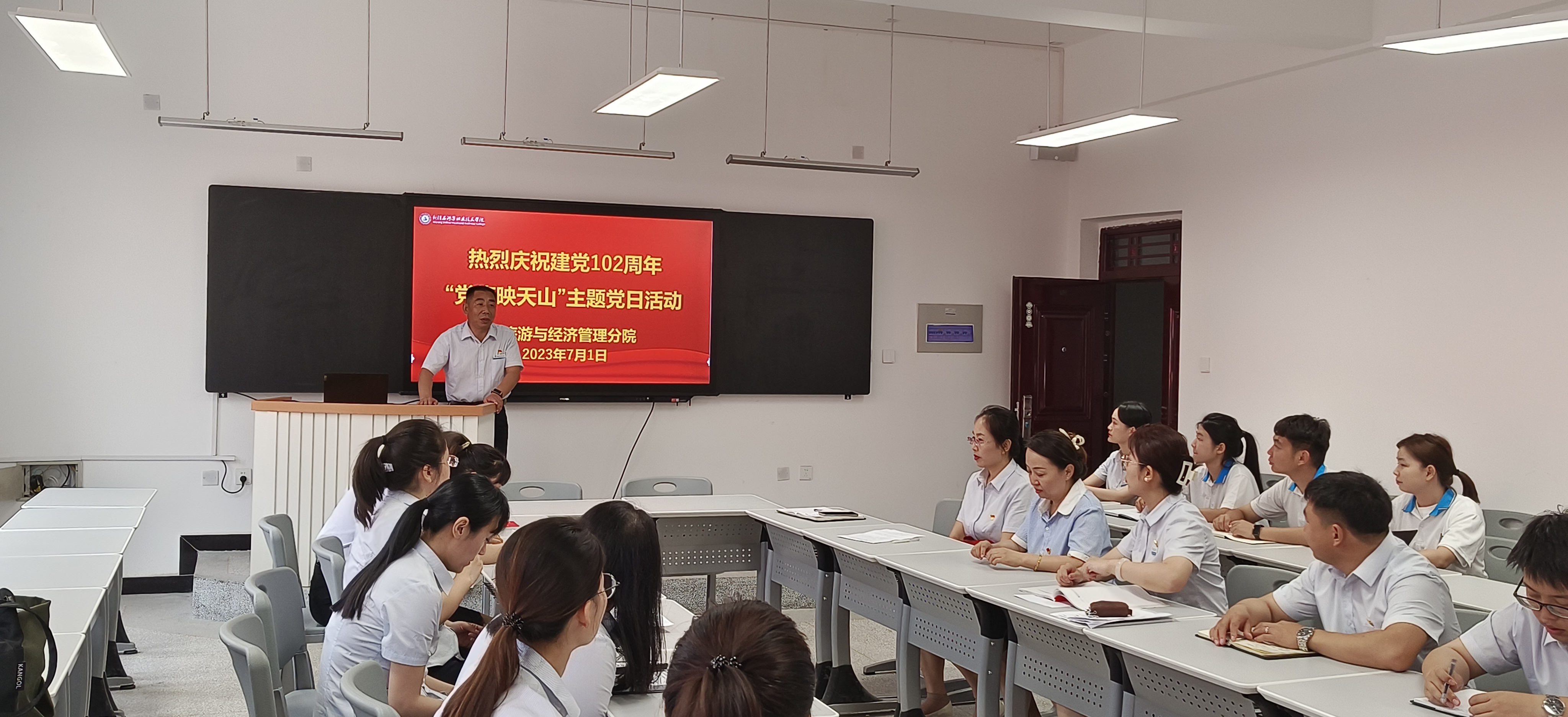 (刘炫坊报道)为庆祝中国共产党成立102周年,2023年7月1日,旅游与经济管理分院党总支开展以“党旗映天山”为主题的党日活动。