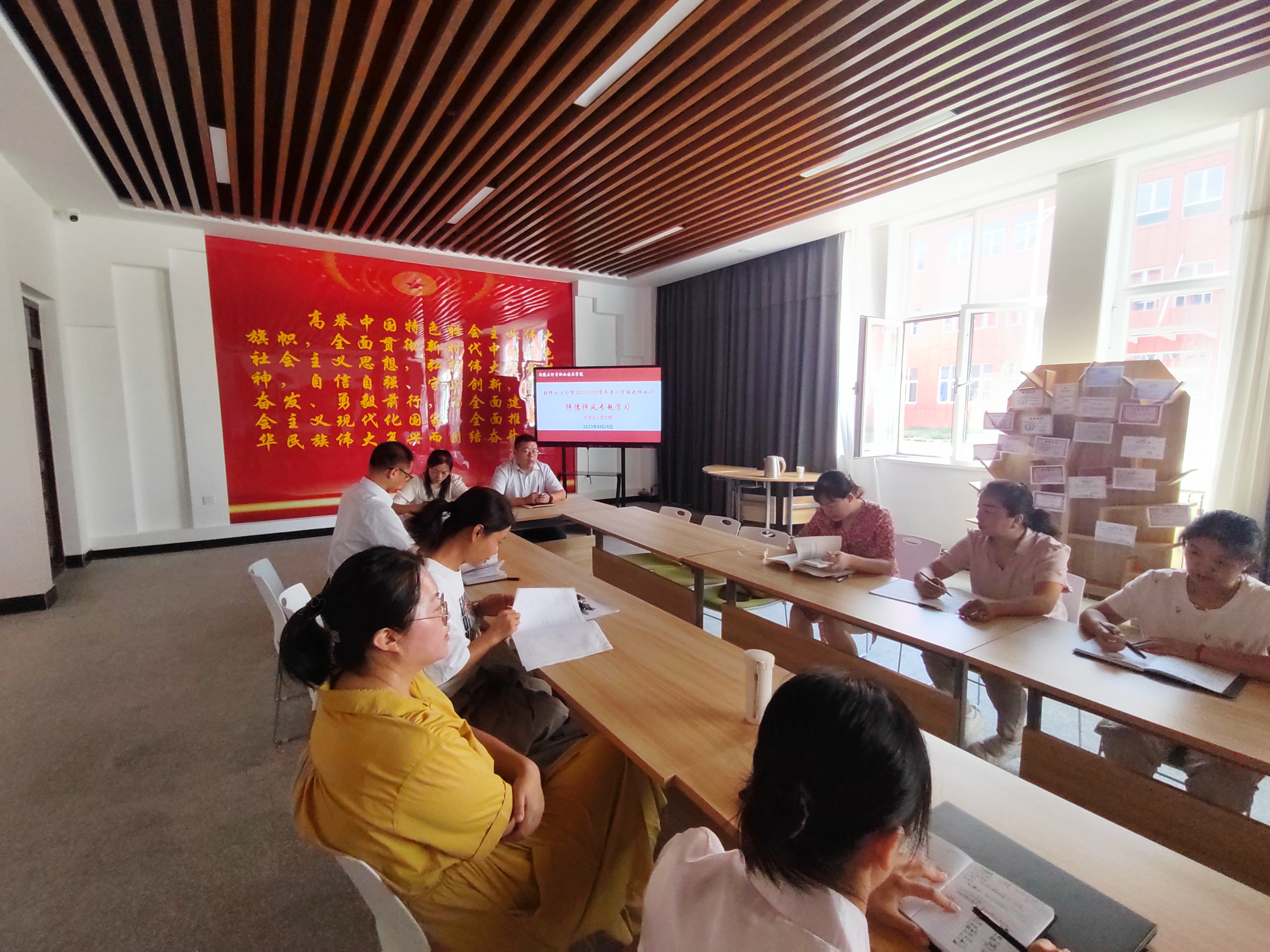 (石妍报道)新学期伊始,为扎实推进beat365唯一官方网站轻纺化工分院师德师风建设,践行师德规范,2023年8月28日下午,轻纺化工分院全体教师在党建活动室参加新学期师德师风教育培训专题会。