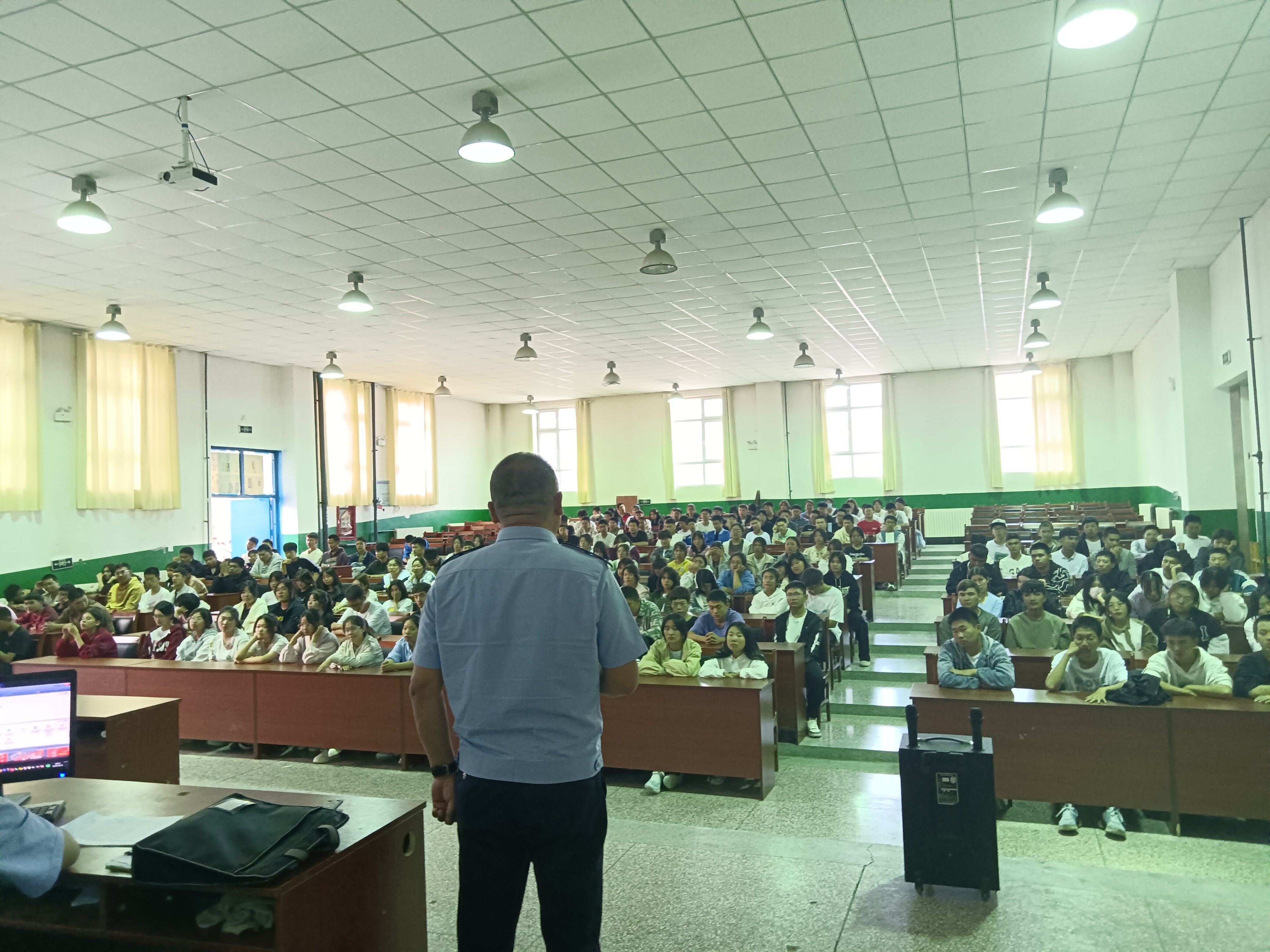 (李思思 报道)为全力筑牢校园安全防线,提高全体师生的安全意识,中职分院于9月13日在西阶教开展以“人人讲安全,个个会应急”为主题的安全大讲堂。