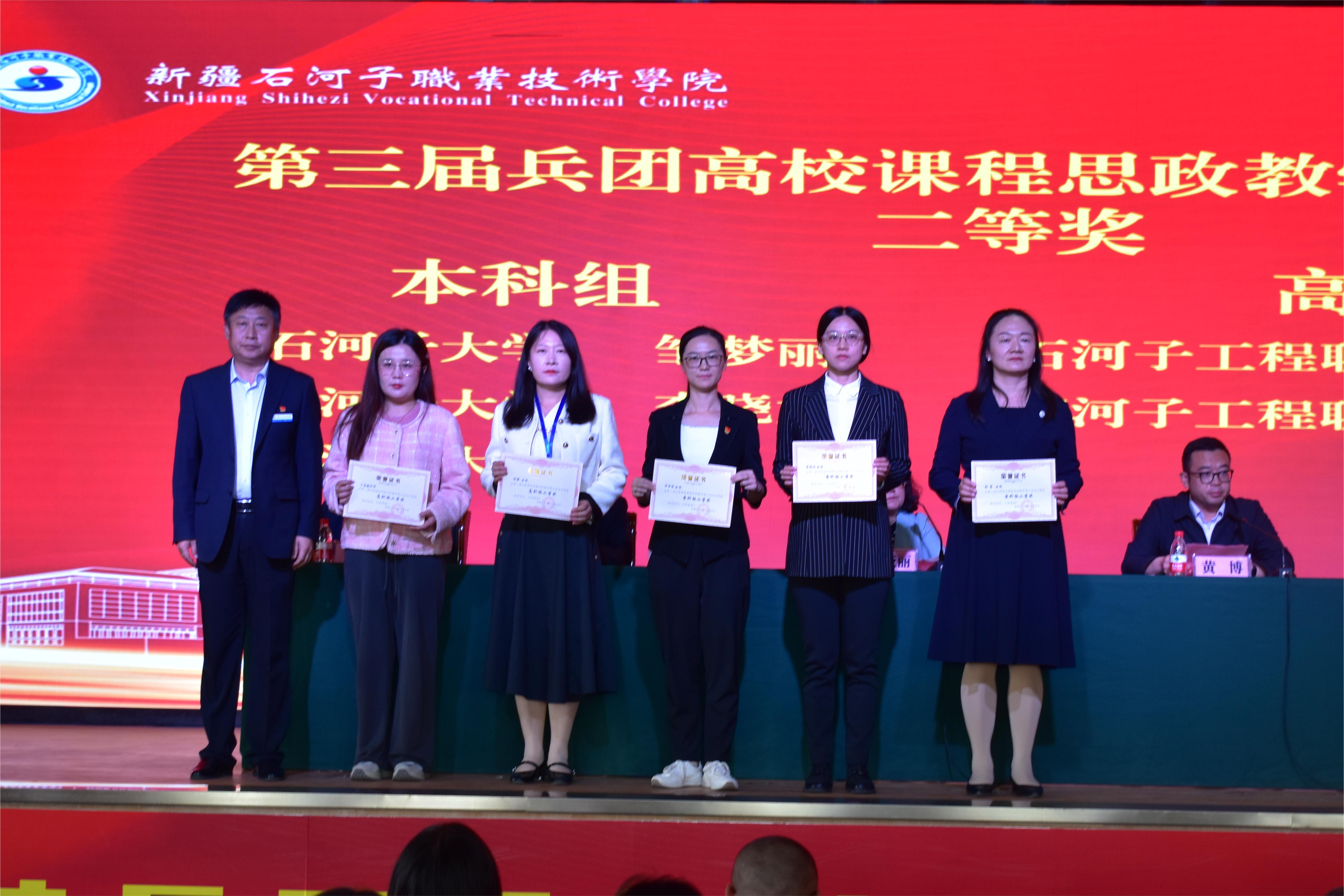 兵团教育局思政处处长金亚丽宣布了比赛结果,各位领导分别为获奖教师颁发证书。beat365唯一官方网站6名教师获奖,其中2人获一等奖、1人获二等奖、3人获三等奖,学院获兵团高校思想政治理论课教学展示活动优秀组织奖。