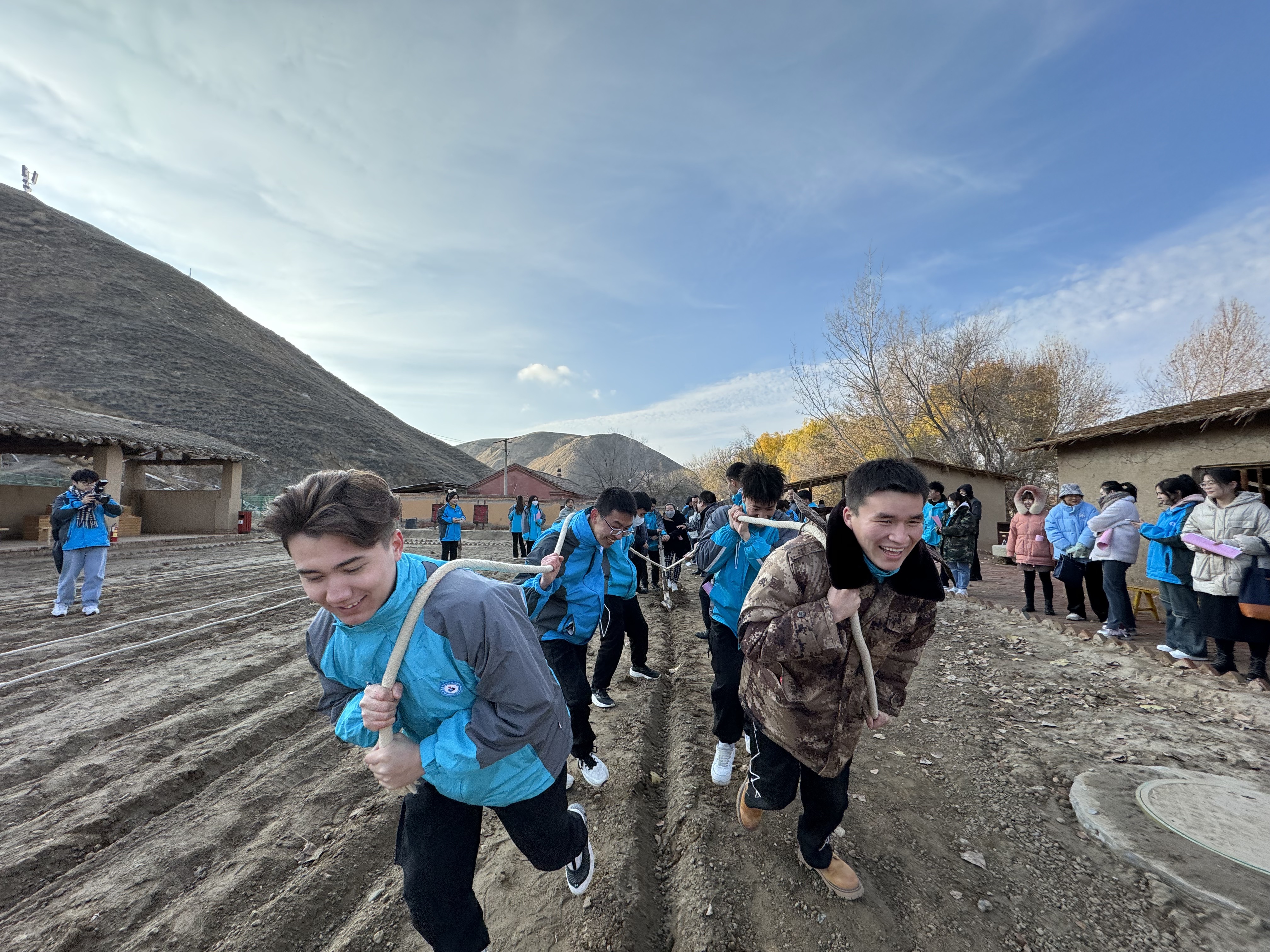在军垦第一连教育基地,信息分院直属党支部书记马晓燕带领全体党员面向党旗庄严宣誓,重温了入党誓词。师生们在工作人员的讲解下观看了展厅内陈列的历史照片、展板和实物,更深入了解了军垦事业发展的历程。随后,学生们进行了拉犁比赛,体验老一辈军垦战士屯垦戍边的艰辛。思政部李彦丹老师为大家讲党课,学生们通过行走的课堂知党史、感党恩。参观学习后,党员教师与结对学生边参观边深入交流,教师们了解了学生近期的学习和生活情况,并询问学生的困难诉求,师生情谊在交流中更加深厚。通过参观学习,结对师生充分感受兵团精神、军垦文化的深刻内涵,感恩老一辈军垦人的无私奉献,更加珍惜现在美好生活,进一步铸牢中华民族共同体意识。