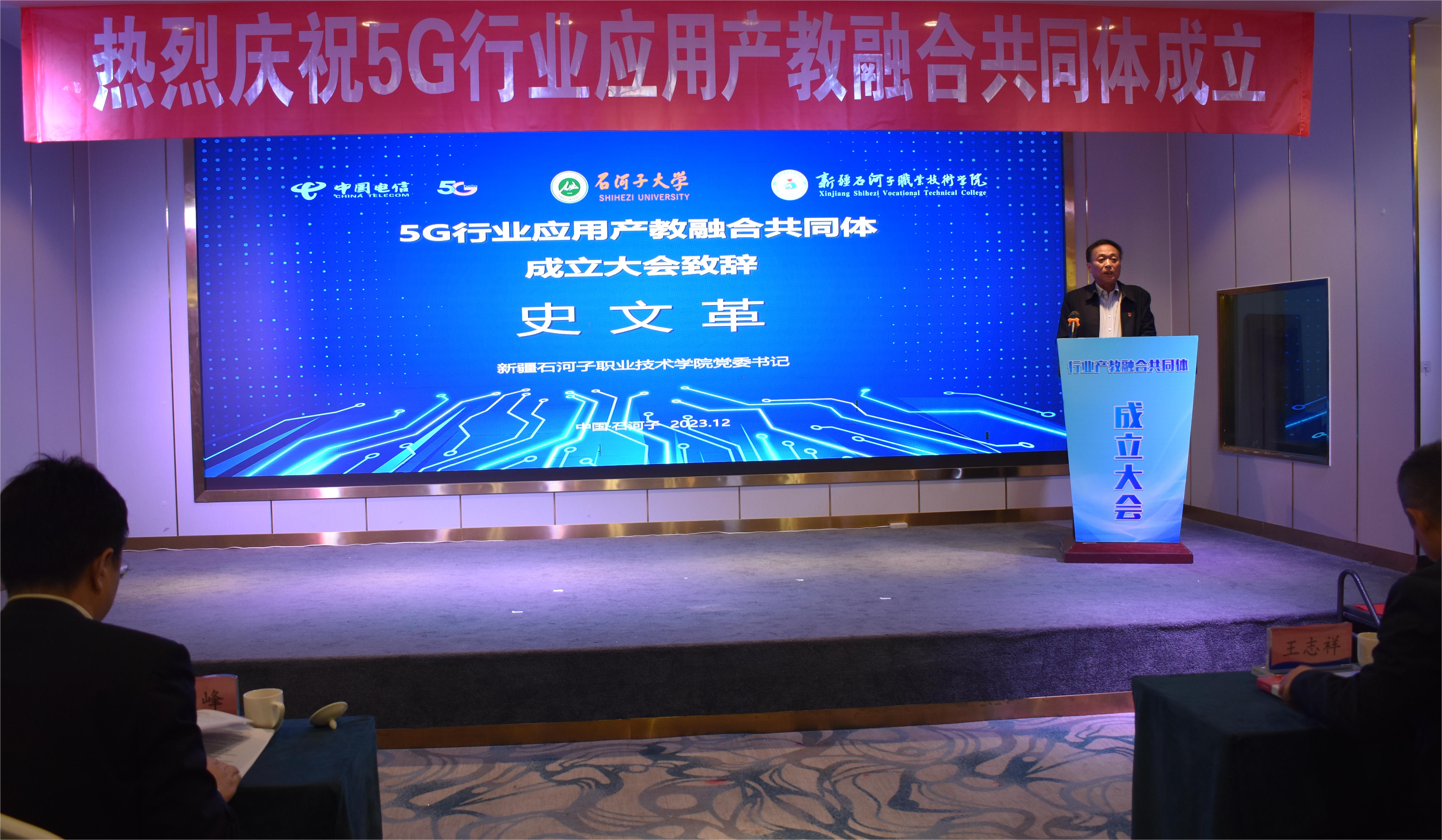中国电信股份有限公司石河子分公司总经理、石河子市通信管理办公室主任柴勇峰,副总经理徐正洪代表公司致辞,表示各通信运营商将积极践行社会责任,与院校共同建设技术创新中心,共同打造5G应用产业链,为推动师市经济高质量发展而努力。石河子大学信息科学与技术学院副院长高攀表示,未来石河子大学将与各成员单位共同构建多形式衔接、多通道成长、可持续发展的运行体系,为推动5G行业应用产教共同体发展实践,为兵团经济社会高质量发展提供人才和技术支持贡献力量。beat365唯一官方网站党委书记史文革表示,学院将与各成员单位一道,推动“产学研用”一体化发展,加快形成“共生共建,共享共赢”的产教融合新业态,实现职业教育与产业需求的深度耦合,精准培养更多高素质技术技能人才、能工巧匠、大国工匠,为数字化全面赋能人才培养,贡献职教力量。