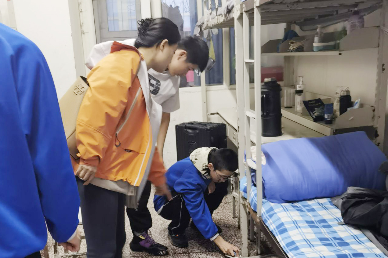“最近学习上有什么困惑吗?”“与同学相处得怎么样?”“生活上有什么困难吗?”学院党员教师走进寝室,与学生促膝长谈,从学习聊到生活,详细了解了同学们的平时学习生活情况,尤其是在课程学习、校园生活、就业规划等方面进行解惑,叮嘱同学们要珍惜时光,勤奋学习,发挥技能所长,展示青年风采。老师们还手把手教会学生有效收纳、摆放物品、整理床铺、地面清洁的小技巧,强调保持宿舍卫生清洁与通风对预防流感的重要性,要求学生们以积极的态度对待内务整理,将宿舍内务整理落到实处,落到细处,杜绝安全隐患,养成良好的卫生习惯。当看到同学们桌上电脑、手机充电线时,叮嘱学生要增强安全意识,规范用水用电,共同创造团结温馨安全的宿舍环境。