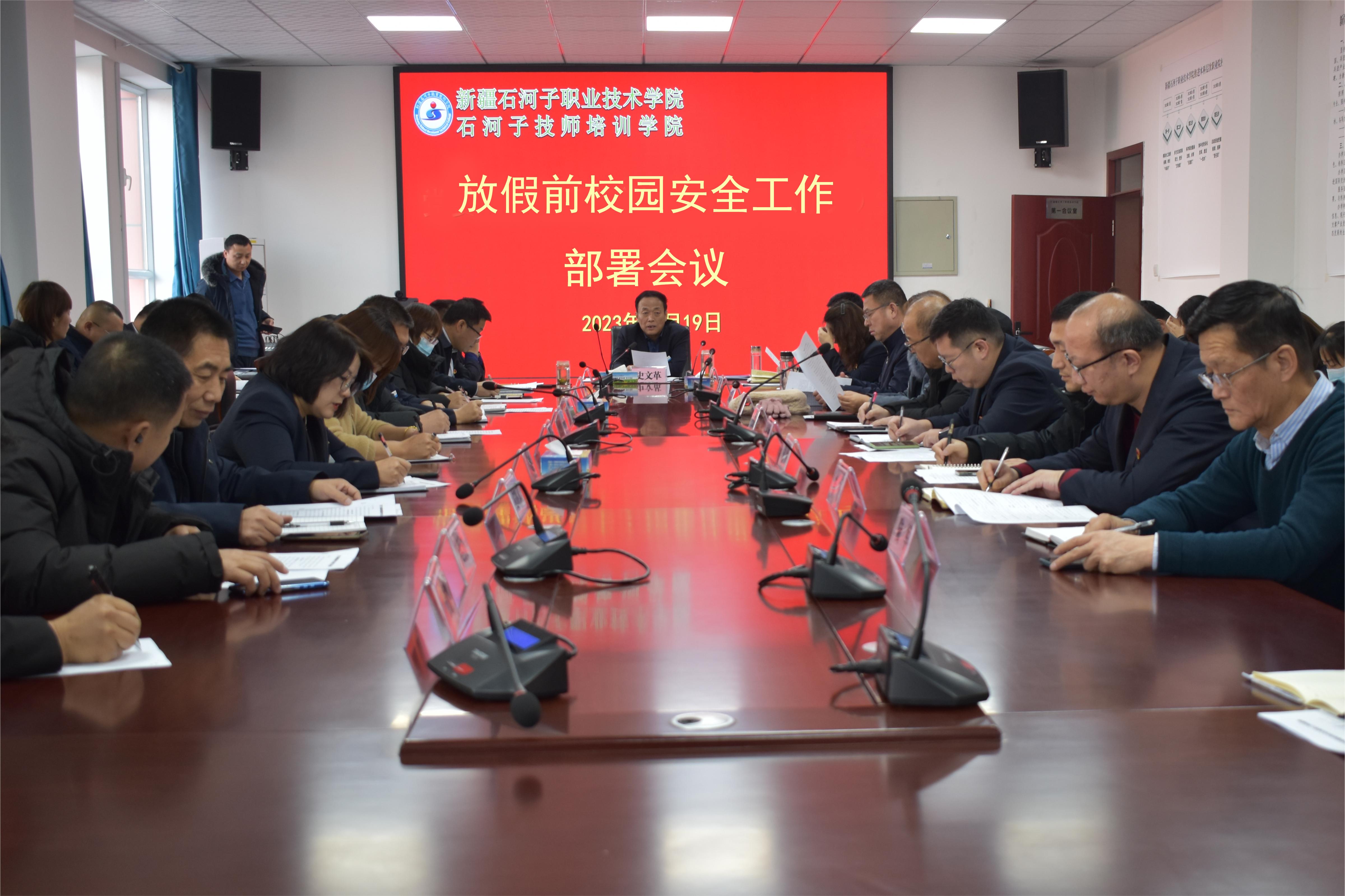 会上,学工处处长韩东传达了关于加强寒假期间学生安全教育工作的通知,从自我防护、心理异常学生帮扶、交通、防电诈、饮食安全、用电及消防安全、重点群体矛盾化解、防溺水、防范自然灾害、法制观念、网络安全等方面教育学生,各二级学院负责人尤其要注意重要时间节点、重要人员的摸排工作,通过召开主题班会、加强家校联系等方式,做好寒假期间学生安全教育工作。