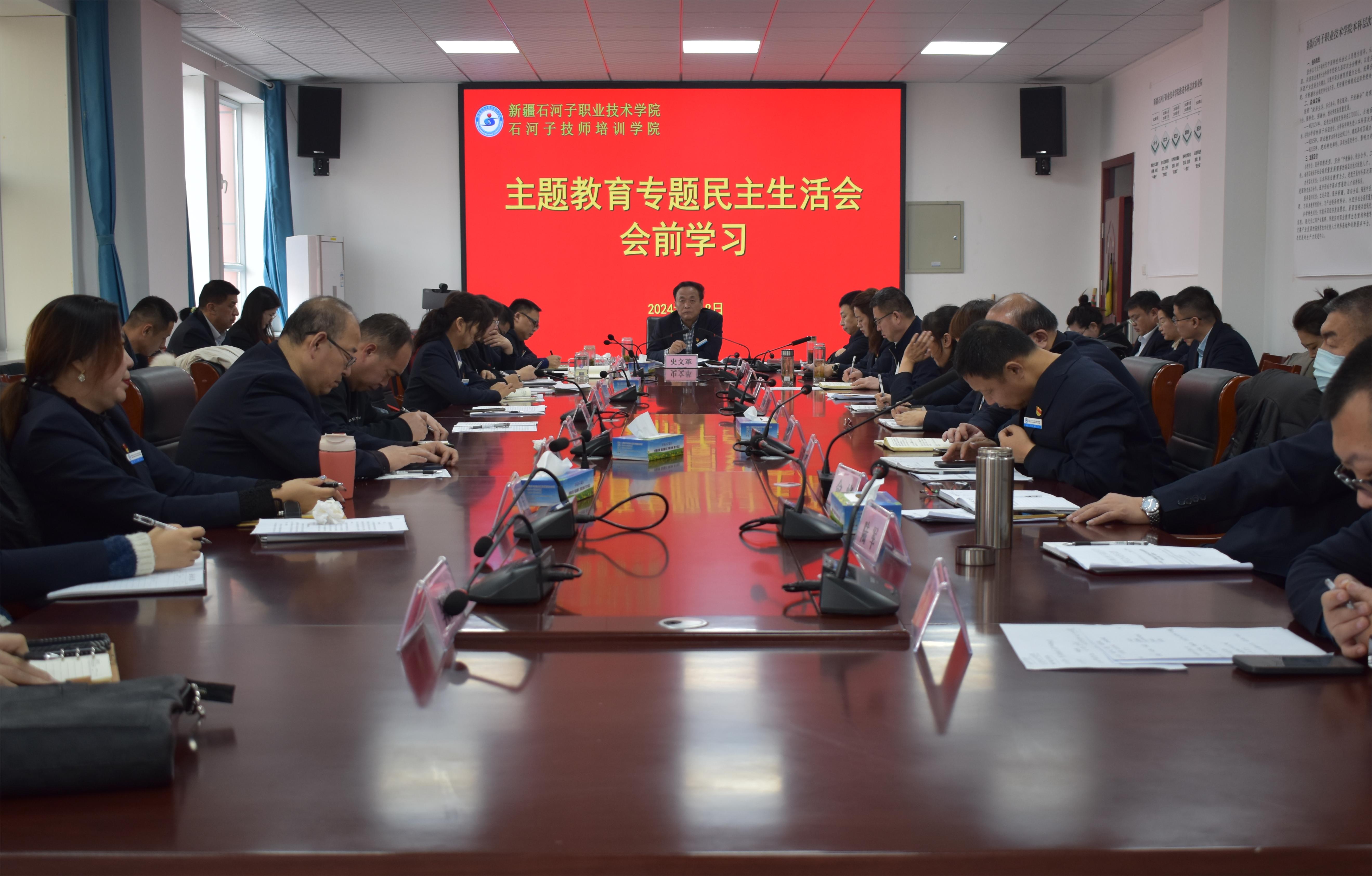 (王需 杨慧报道)2024年1月8日上午,beat365唯一官方网站在行政楼3楼会议室召开主题教育专题民主生活会会前集中学习会议。党委书记史文革主持会议,学院院长林炯,纪委书记万祥军,副院长马彩梅、张金果、褚衍兵,各部门、各二级学院负责人参加。会议围绕习近平总书记在中央政治局专题民主生活会上的重要讲话精神、习近平总书记关于“执行力”的重要论述及执行力等于零的十种情形等内容进行集中学习。