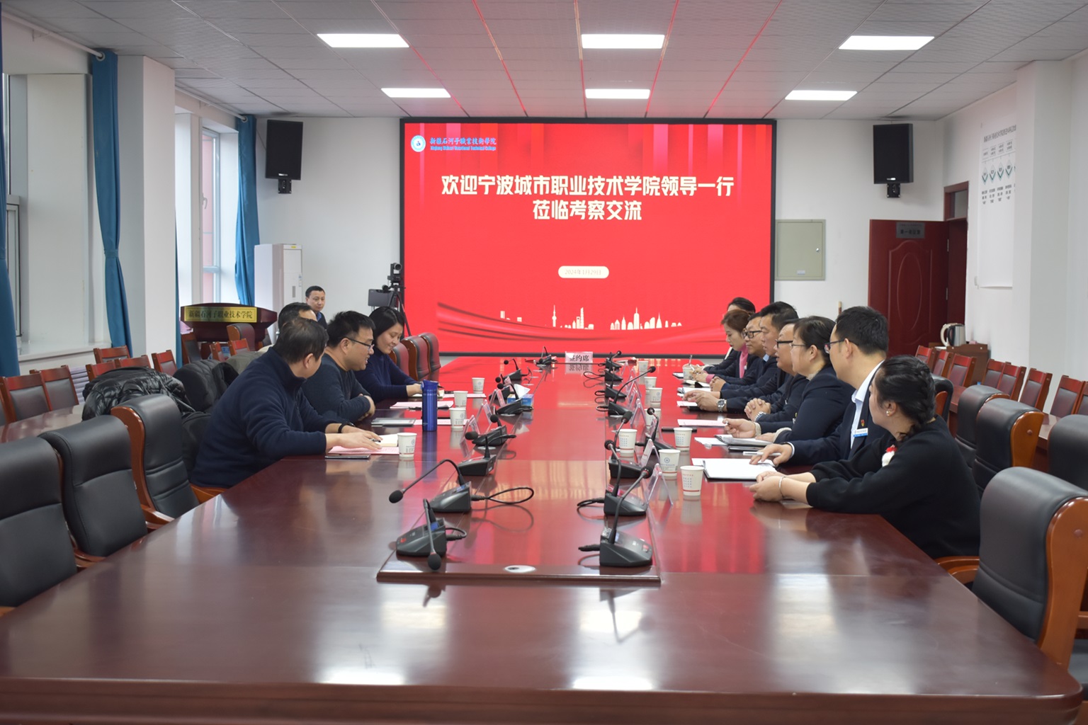 (王需 徐千然 报道)为进一步加强职业院校校际交流合作,深化“双高”建设,促进人才培养质量的共同提高,2024年1月29日,宁波城市职业技术学院副校长叶宏武一行四人莅临学院进行考察交流,在学院行政楼309会议室开展座谈。学院党委书记史文革、相关部门负责人参加此次会议。会议由学院纪委书记万祥军主持。