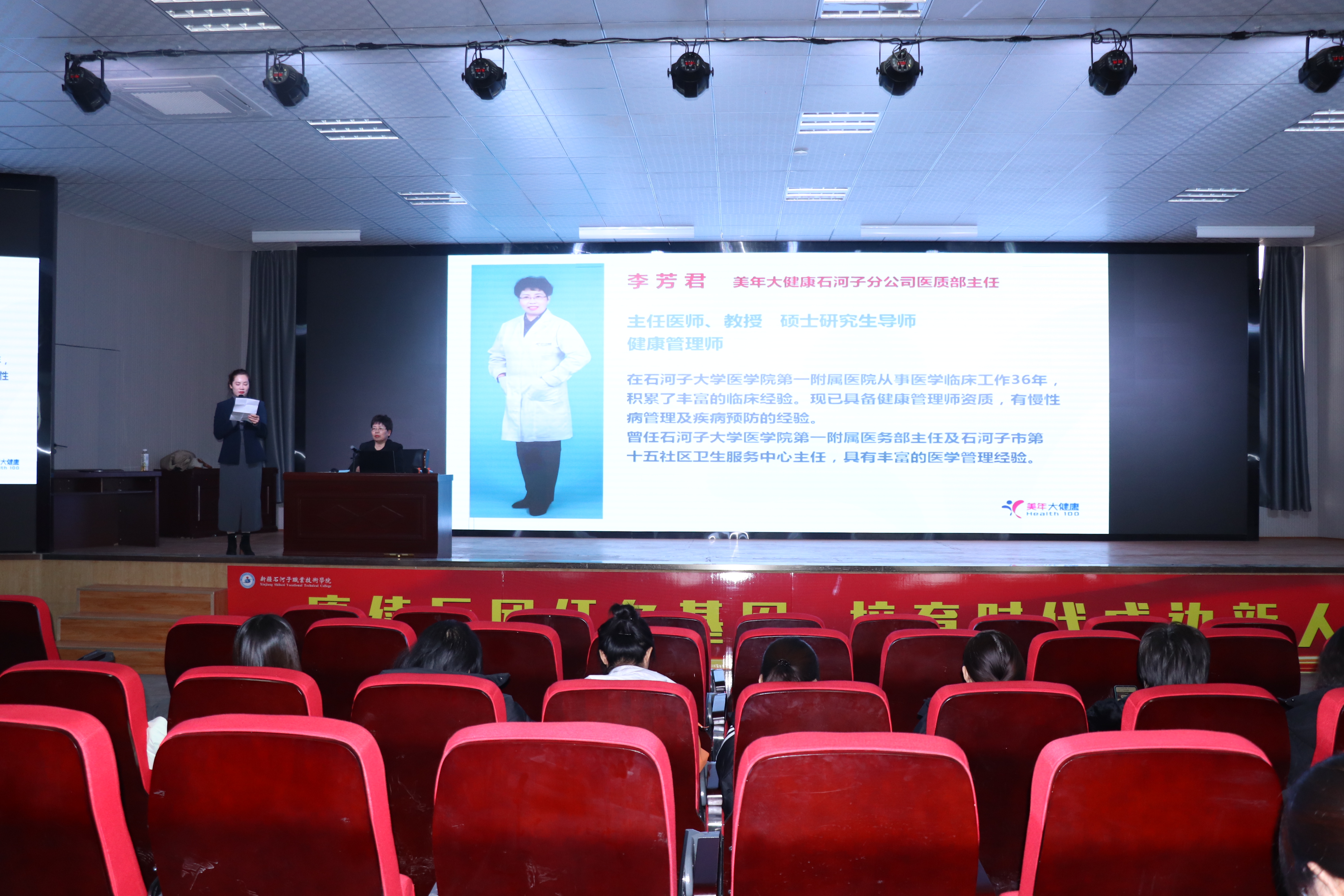 (张宇 报道)为缓解女性职工工作和家庭的双重压力,培养女教师积极乐观的良好心理素质,在第114个“三八”国际妇女节到来之际,学院工会、女工委结合学院实际情况,邀请美年大健康石河子分公司医质部主任医师、教授、硕士研究生导师李芳君在学院南附楼三楼阶梯教室开展《阳光心态 科学减压》心理健康知识讲座,学院全体教职工参与学习。
