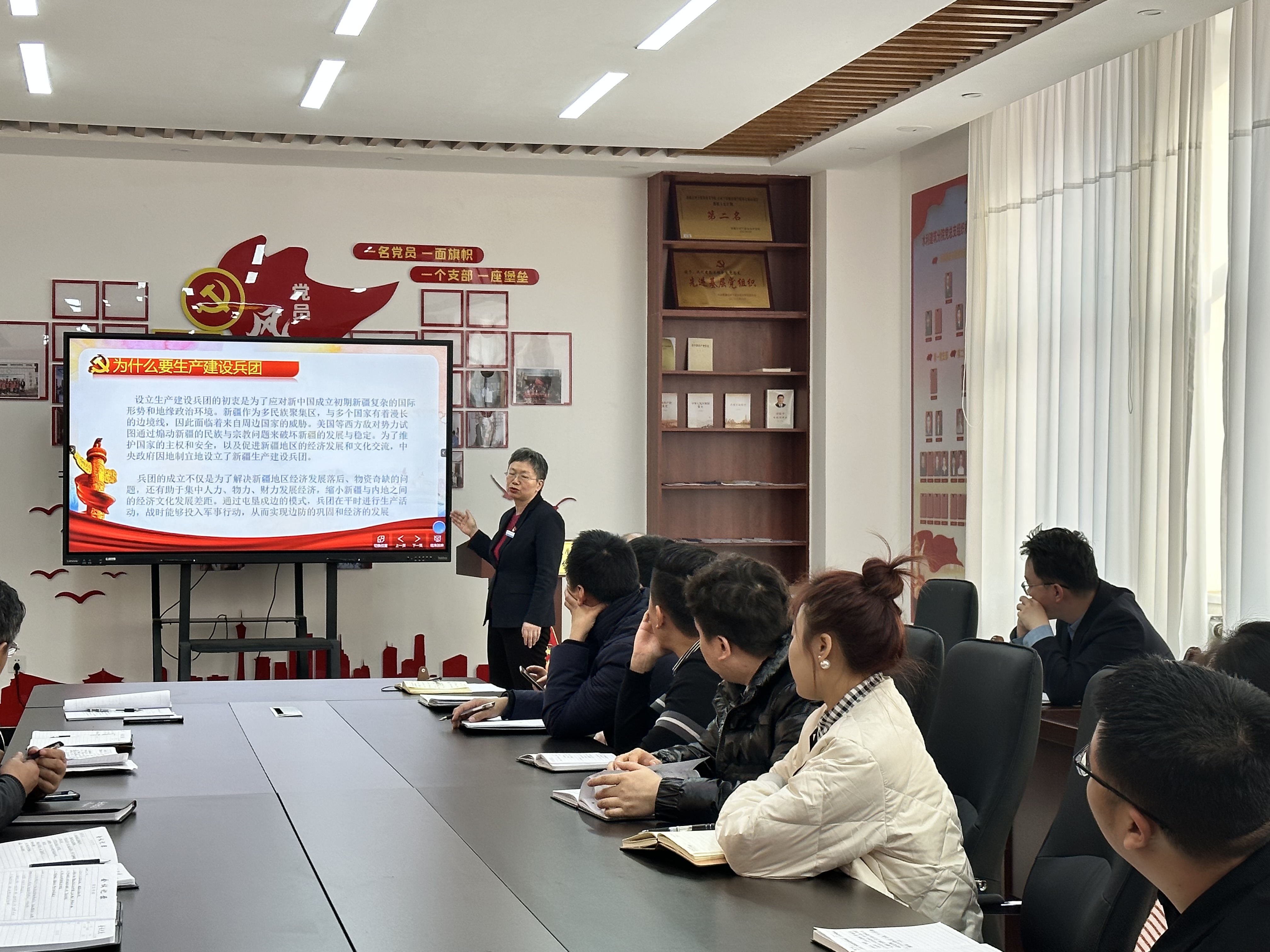 (周俞彤 报道)为了纪念兵团成立70周年,回忆红色岁月、感受革命精神,激发广大妇女爱党、爱国的热情,水利建筑工程学院于2024年3月7日下午18:00在学院B104开展了一场主题为“弘扬兵团精神 传承军垦家风”的活动。全院教师参加了此次活动,活动由水利建筑工程学院党总支书记韩东主持。