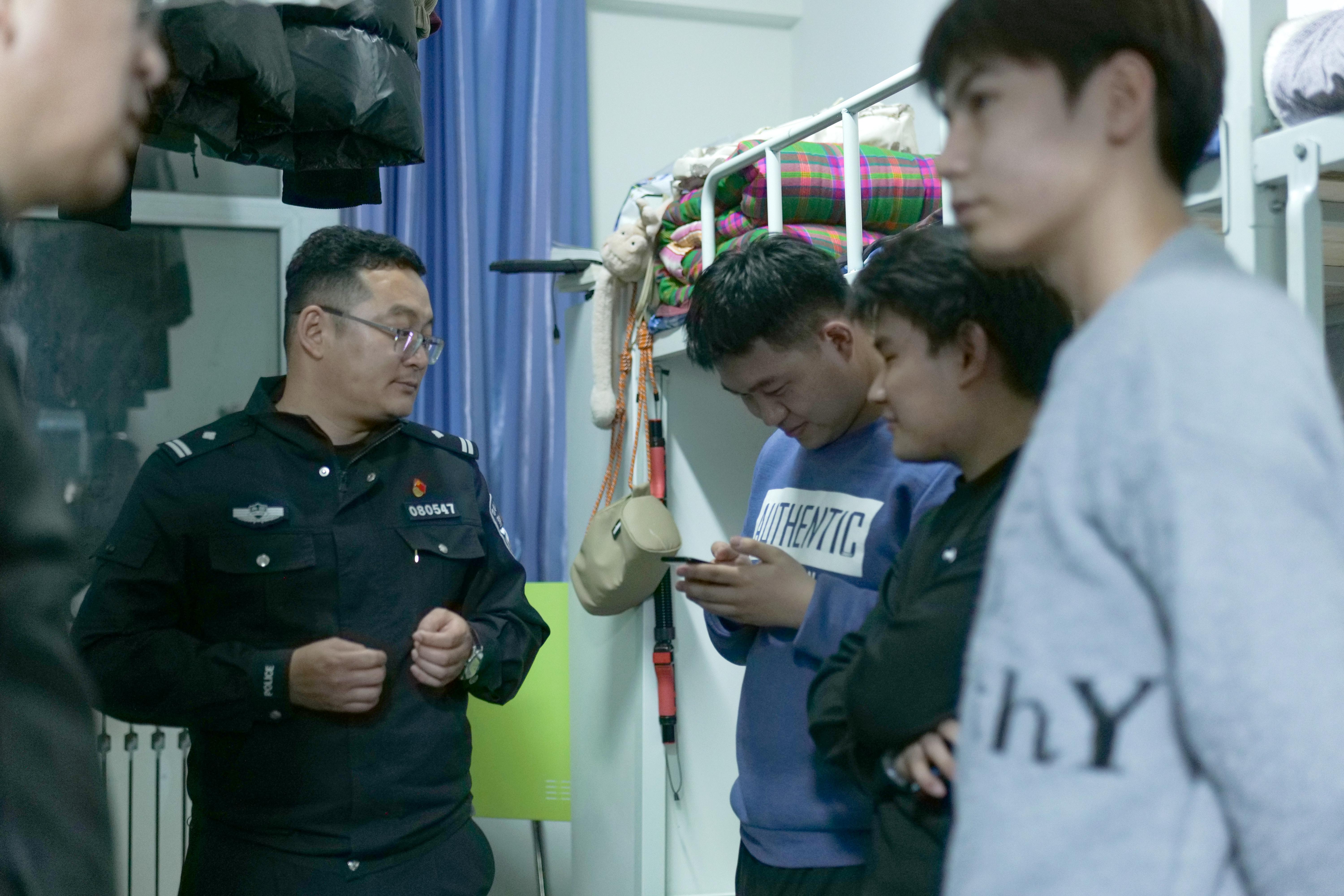 实字为底,深入开展法治进寝室宣传活动。3月11日晚,学院党委书记史文革、纪委书记万祥军、副院长张金果及相关部门负责人,各二级学院领导及班主任联合公安部门和辖区派出所邀请120余名民警深入宿舍楼,围绕国家安全、电信网络诈骗、青少年犯罪等重点开展了一次特殊的法治宣传。民警精心设计普法内容,走进宿舍,面对面以促膝谈心的方式向学生们生动科普了仿冒身份类、刷单类、网贷类、杀猪盘类、利诱类、木马病毒类等电信诈骗类别,向同学们普及面对诈骗时正确处理方法,手把手教会大家如何安装和使用“国家反诈中心” APP,引导学生们增强自我保护意识和能力。