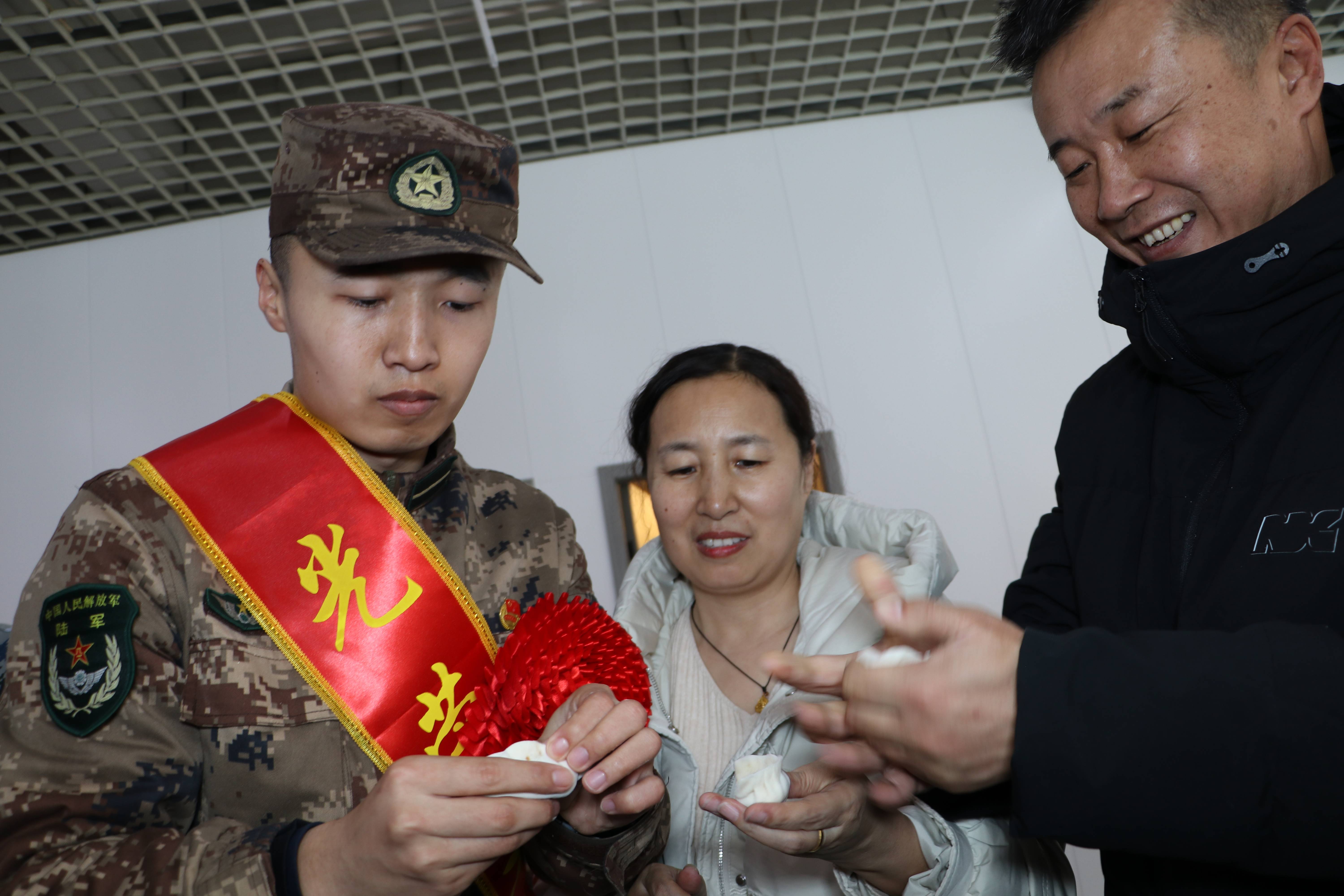 亲情暖饺,情系军旅。学院邀请2021级军士生与家长们来到食堂,共同围坐在餐桌边互诉衷肠,将对战友的依依不舍、对母校的感恩、对师长的感激和对未来的期待与清香鲜美的面团、馅料糅合,包成了热气腾腾的饺子。现场温馨和谐的氛围,让即将远离家乡、踏入军营的同学们感受到浓浓的暖意。