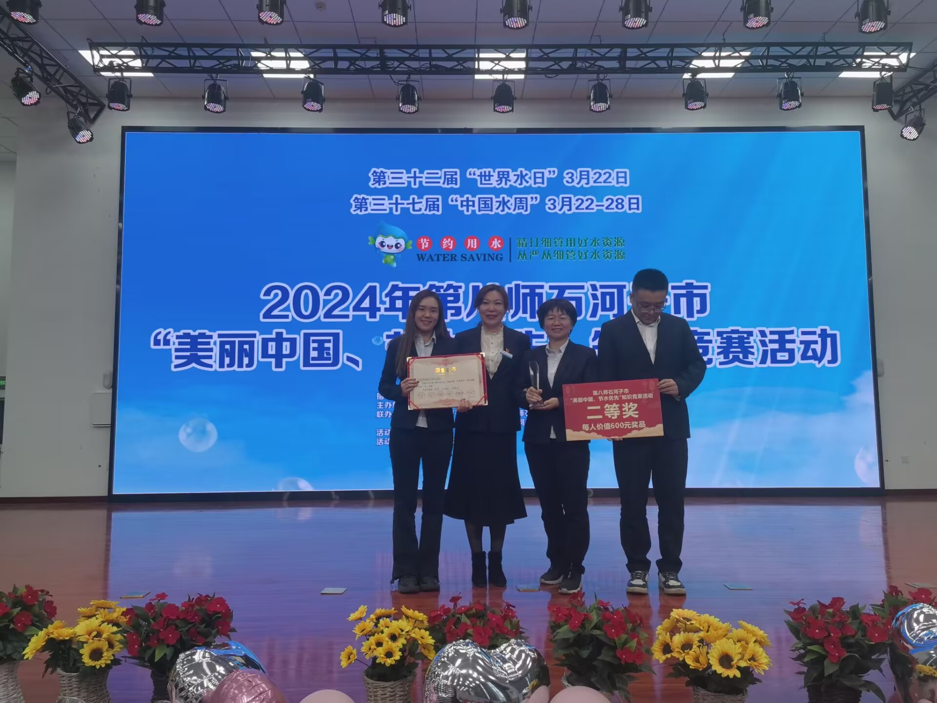 (周俞彤报道)为深入学习宣传贯彻党的二十大精神和习近平总书记治水重要论述精神,深入推进国家节水行动,推动节水型社会建设,提高公众节约用水意识和能力,第八师石河子市于3月22日在石河子第五中学成功举办了以“美丽中国、节水优先”为主题的知识竞赛。师市各部局、驻石单位17支代表队共51名选手参与此次活动。水利建筑工程学院水利教研室的王海英、孟奇、徐靖晶代表学院参赛,荣获二等奖。