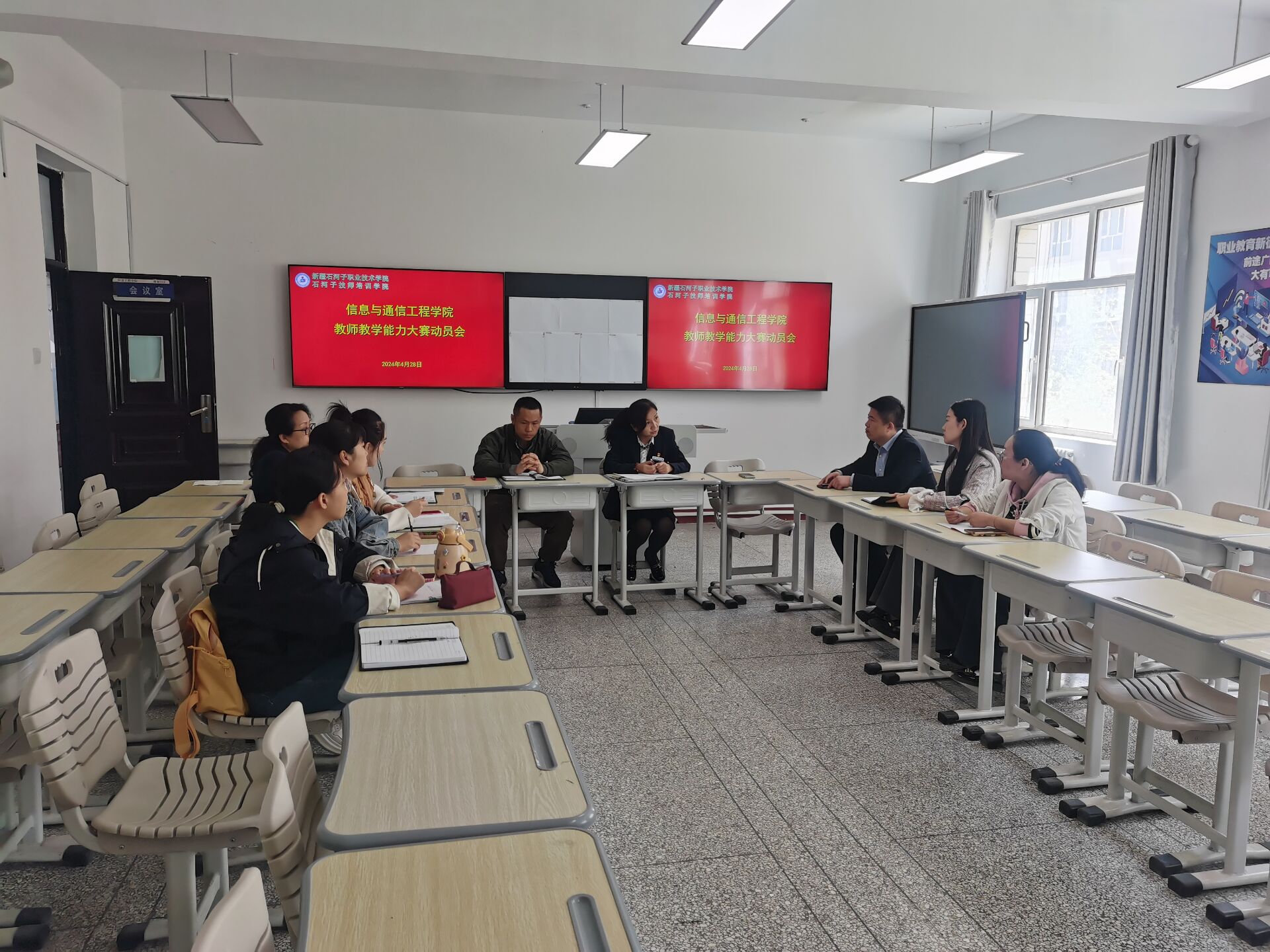 (崔安琪 报道)为进一步提高教师教学能力,促进教师队伍专业化发展,实现以赛促教改,以赛促建,信息与通信工程学院于2024年4月28日组织参赛教师在信息楼303开展教师教学能力大赛兵团赛动员会。
