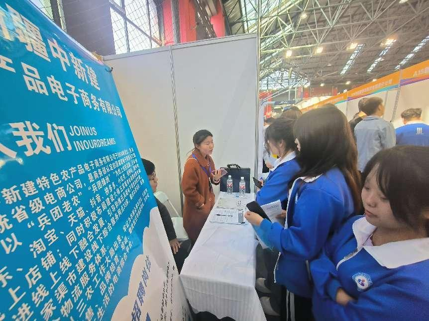 (查兴强 报道)2024年4月27日,数字商贸学院90名学生参加了在石河子市红山全民健身中心举办的“千企万岗‘就’在兵团”专项行动暨大中专院校毕业生系列招聘会。