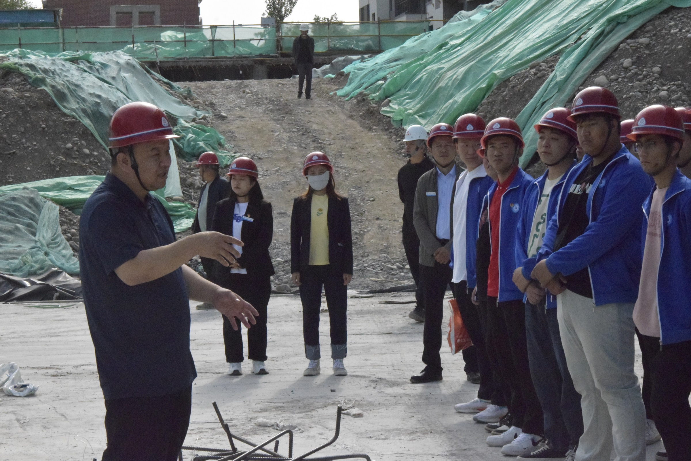 在踏入施工现场之前,全体师生接受了严格的三级安全教育,确保现场教学、施工过程安全规范。在实地教学中,师生们围绕深基坑开挖、边坡支护、筏板基础、钢筋加工与连接等建筑工程基础环节进行研讨与交流,学生在专业教师的悉心指导下,对基础施工环节有了更为直观和深入的认识。在实地观摩中,学生们在刘亚峰老师的组织下,分组进入项目施工楼内部,观看了主体结构的施工过程,学习施工规范和质量验收标准,通过参观已完工的主体结构和二次结构工程的楼体内部,对建筑工程整体施工流程有了更加清晰的理解。在施工现场会议室,学生们认真聆听牟青贺老师对项目的结构施工图进行的深入解读,并在老师的指导下结合图集及规范标准对图纸进行了细致分析。
