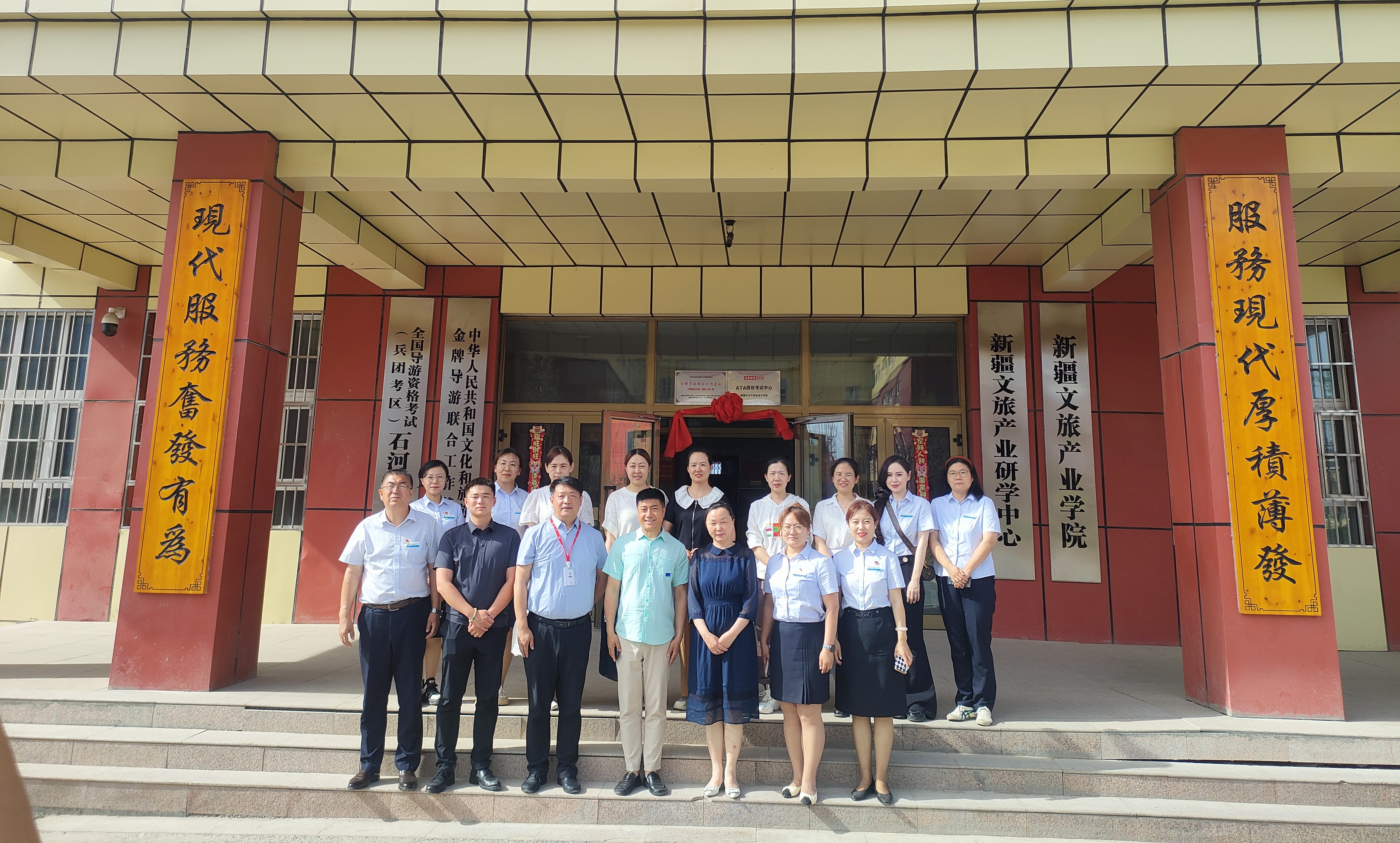 现代服务学院直属党支部书记俞峰对新疆文旅产业学院、新疆文旅产业研学中心、文旅部金牌导游联合工作基地和全国导游资格考试(兵团考区)石河子考点的揭牌表示热烈的祝贺,揭牌对于现代服务学院进一步推进校企合作,深化产教融合发展具有重要的意义,现代服务学院将以此次为契机,期望未来校企合作更加深入,扎实推进各项工作。蒋小玉院长表示,现代服务学院专业发展离不开行业企业的大力支持,希望今后院校和企业继续手挽手、肩并肩,在校企合作、产教融合的道路上走得更稳、更远。