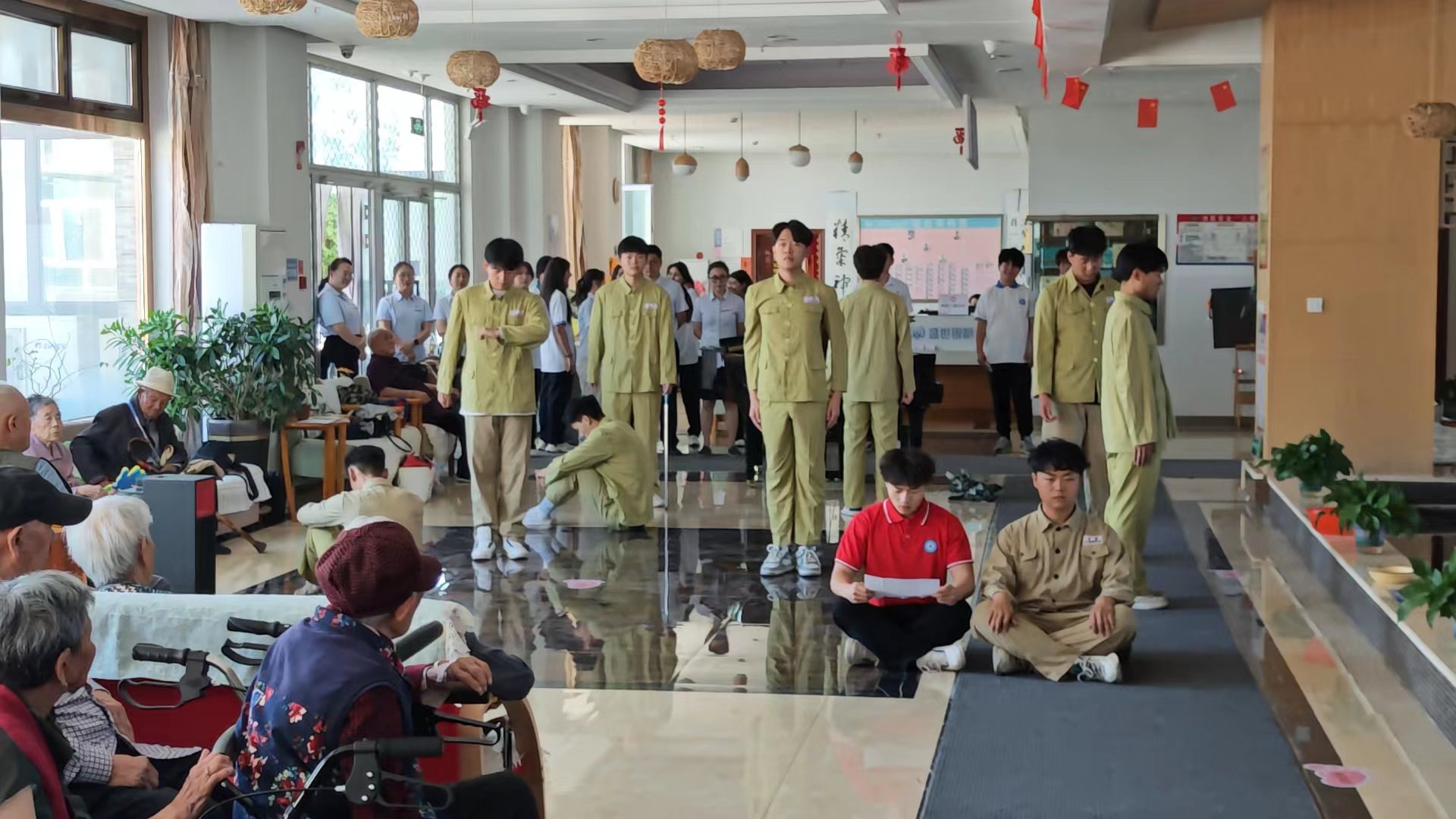 慰问活动在热烈的气氛中正式开始,学院教师们深情朗诵《依然年轻的城》,韵律优美动人,表达了对这座城市深深的眷恋和美好的期许;随后上演的原创情景剧《大漠无悔》生动地讲述了三代兵团人在天山南北的扎根历程,实现了在戈壁滩打造花园的梦想,触动了在场的老人们,仿佛时光倒流回到那个充满革命热情的年代,真切感受到了兵团精神和老兵的无悔情怀;接着,舞台上的《欢乐的跳吧》为观众带来了各族人民独有的热情奔放;最后,同学们与爷爷奶奶共同挥毫泼墨,展现了书法独特的魅力。在活动过程中,大家亲切交流,关心着老人们的身体和生活,让他们深切感受到了无比的温暖与关怀。