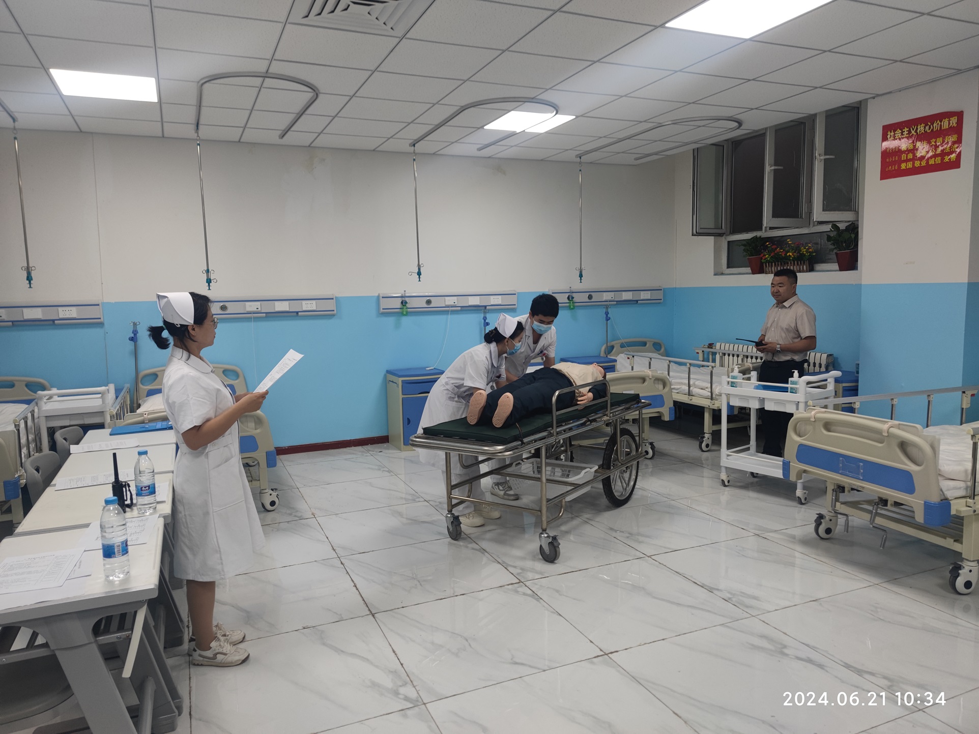 (白培宏 卡米来 报道)为进一步提升和规范学生专业技能操作,使学生更好地适应未来职业生活,2024年6月21日,现代服务学院开展护理技能实训考核,考核从仪容仪表、礼仪规范、基础操作等方面全面考察学生职业能力和规范,护理专业22级178名学生参加考核。