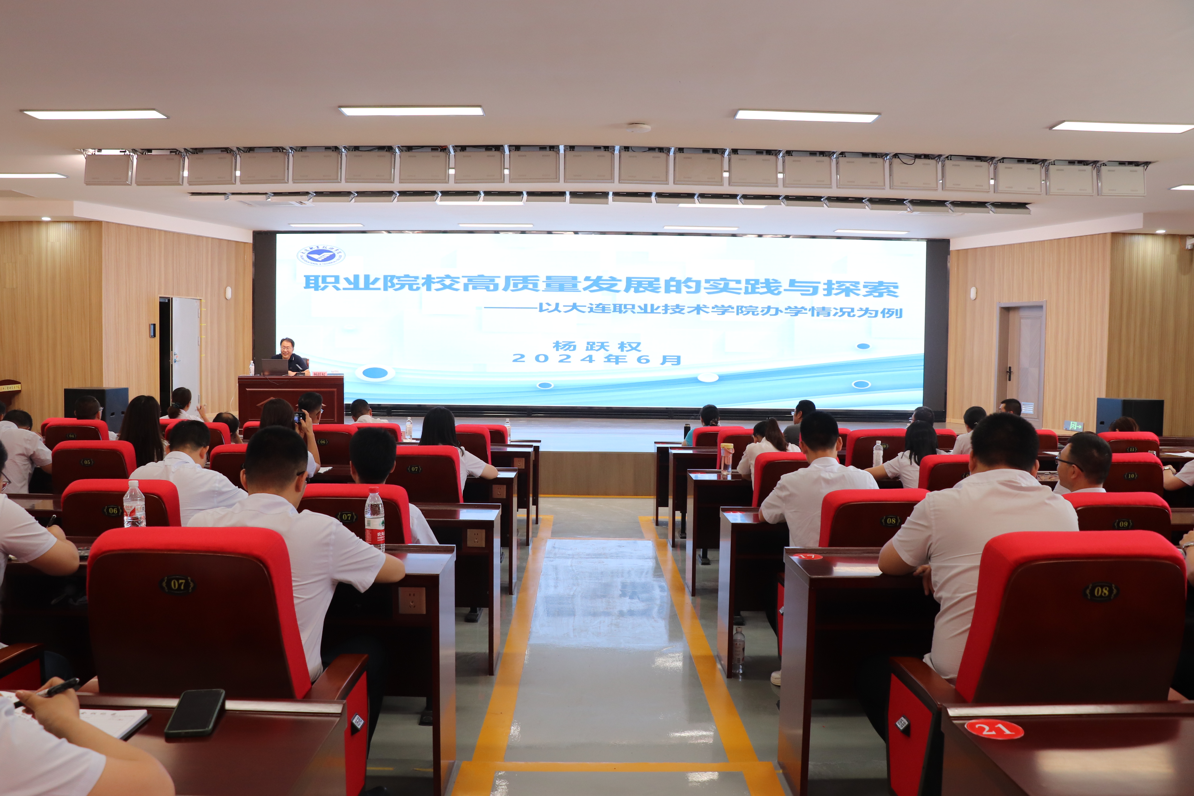 下午,杨跃权校长以《职业院校高质量发展的实践与探索》为题,分享了大连职业技术学院的基本情况、十四五办学目标、推进路径等情况,深入剖析了大连职业技术学院在办学理念、人才培养模式、社会服务功能等方面的高质量发展路径,强调了师资队伍建设、课程体系建设、校企合作等关键环节的重要性,并展望了未来学院在人才培养、科研创新、社会服务等方面的发展前景。