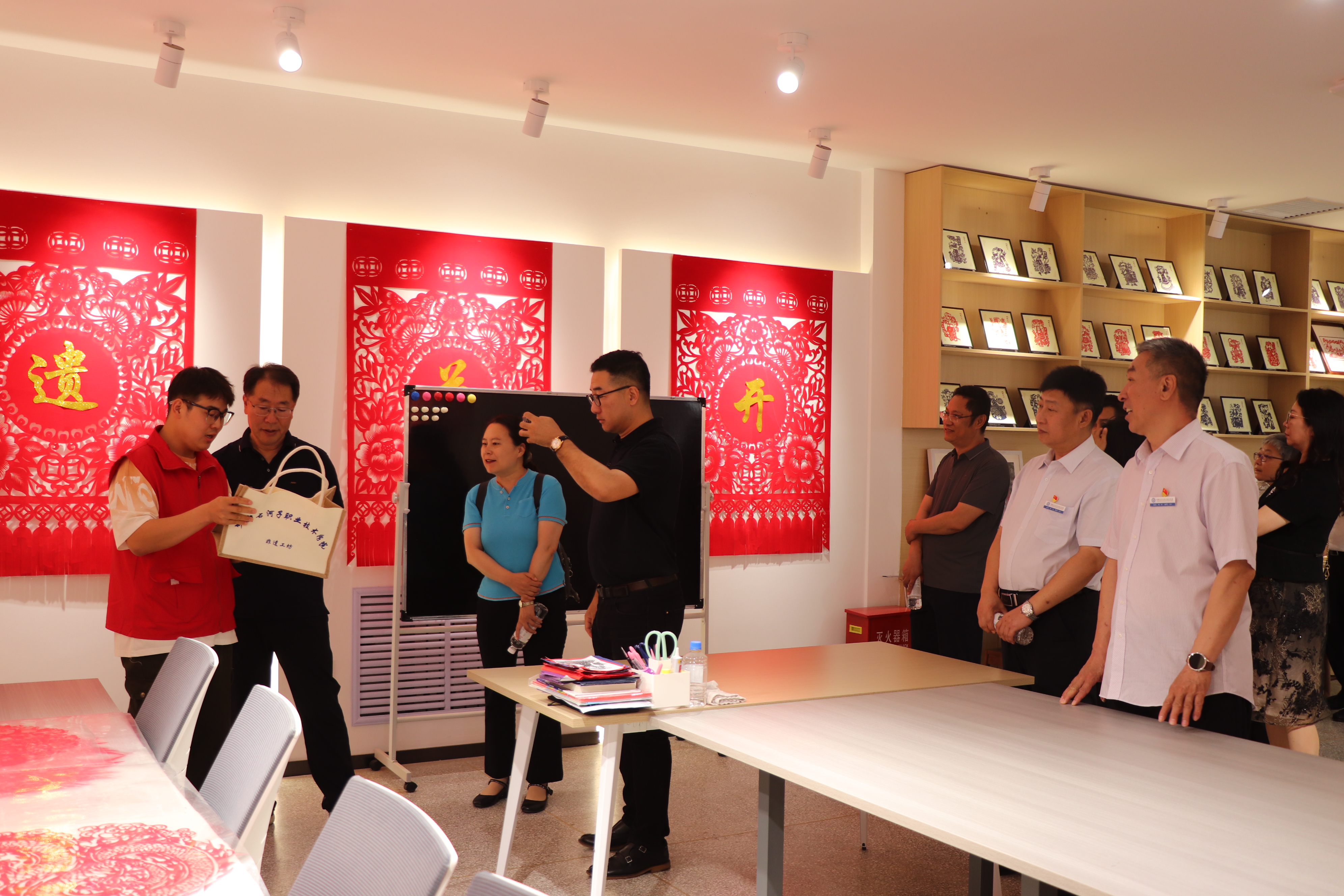 领导一行参观了学院种德育人实践基地、爱国主义教育基地和创新创业实训基地,了解了学院在思政教育、双创教学及产教融合等方面的创新成果。史书记详细介绍了学院大思政阵地建设工作,围绕学院双创育人课程体系的构建、产教融合人才培养模式以及学生创业项目的孵化等方面对学院双创育人的新模式及教学成果的转化进行介绍。在创新创业中心非遗工作室,项目负责学生向领导们展示了非遗文创产品,领导们高度评价了学院在推动产学研一体化、促进科技成果转化为社会生产力方面所取得的显著成效,两校相关负责人共同就多样化人才培养、技术技能传承及就业创业促进等领域的创新路径展开交流探讨。