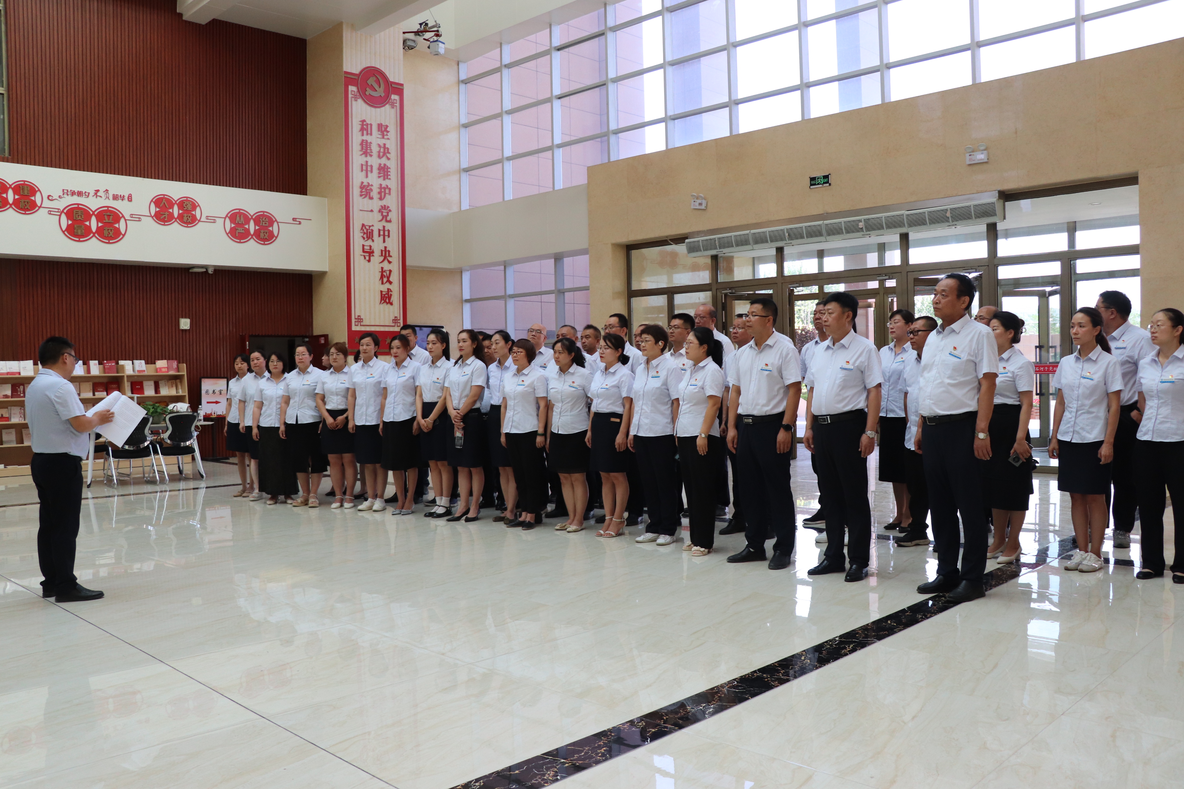 党课结束后,全体党员干部在党旗下庄严宣誓,重温入党誓词。他们紧握拳头,神情肃穆,用铿锵有力的誓言表达了对党的忠诚和坚定信念,这一环节不仅让党员干部们的心灵受到了洗礼,也进一步增强了他们的党性修养。