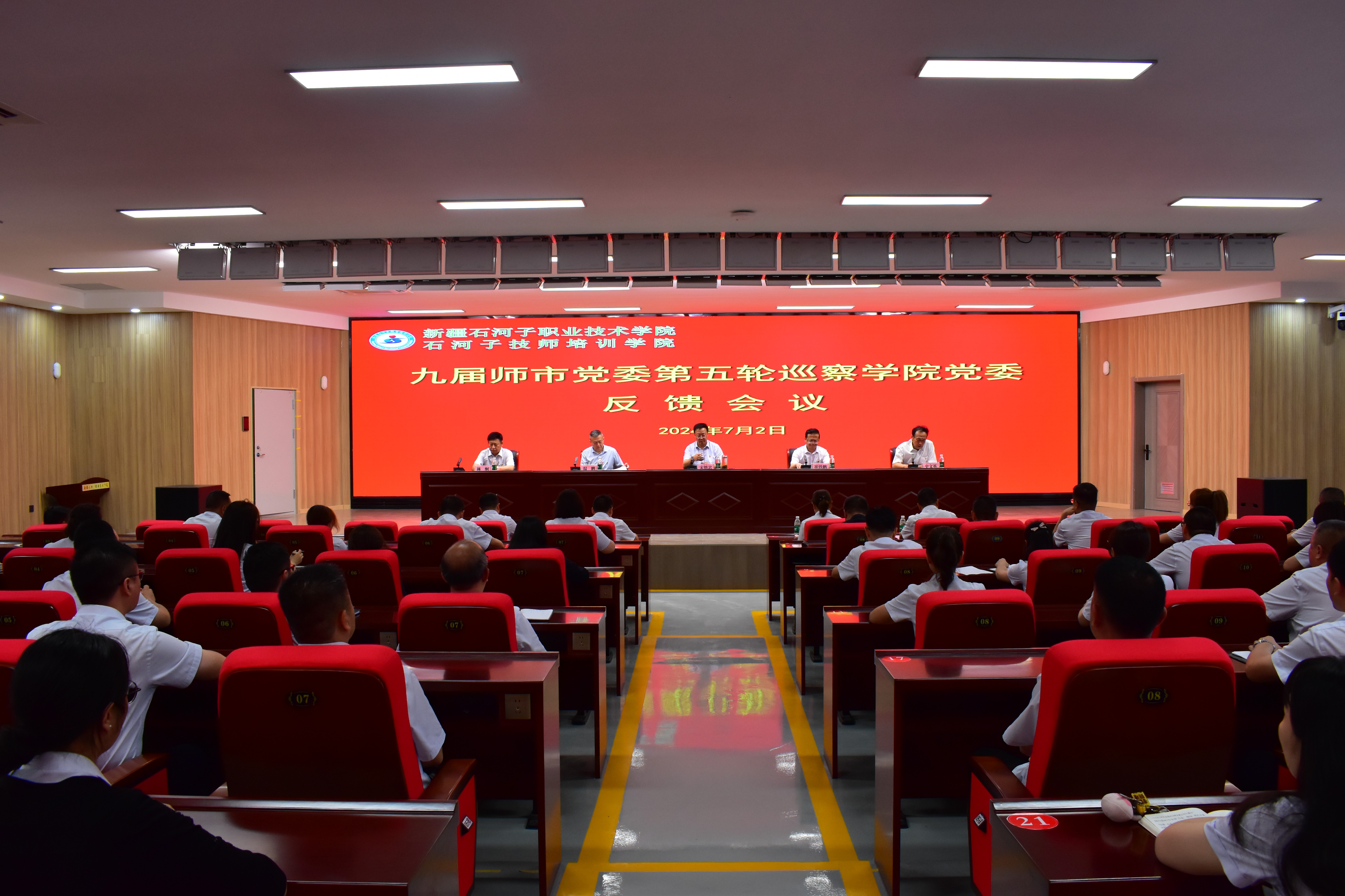 (杨慧 报道)根据师市党委巡察工作部署统一安排,2024年7月2日下午,九届师市党委第五轮巡察beat365唯一官方网站党委情况反馈会在学院宏智楼一楼阶梯教室召开。第八师副师长、石河子市副市长宋德忠,师市纪委副书记、监委副主任崔铁鹏,师市党委第二巡察组组长温鹏,师市党委第二巡察组干部张金龙出席会议,学院党委班子成员及全体教职工代表参加会议。会议由学院党委书记史文革主持。