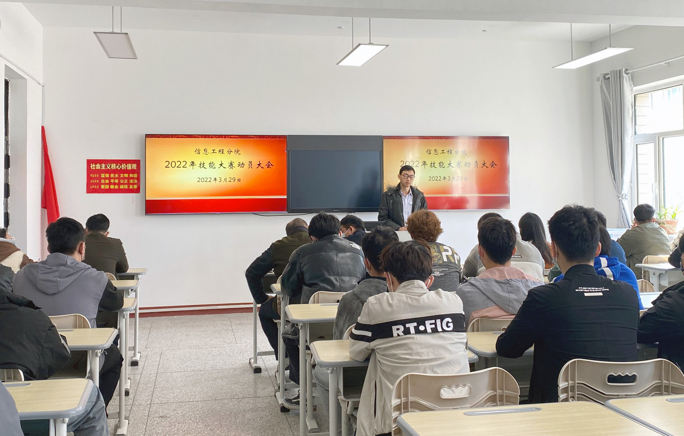 (崔安琪报道)为迎接2022年自治区职业院校技能大赛,做好赛前准备工作,3月29日,信息分院在信息楼303会议室组织召开2022年技能大赛赛前动员会。会议由分院副院长周鑫主持。
