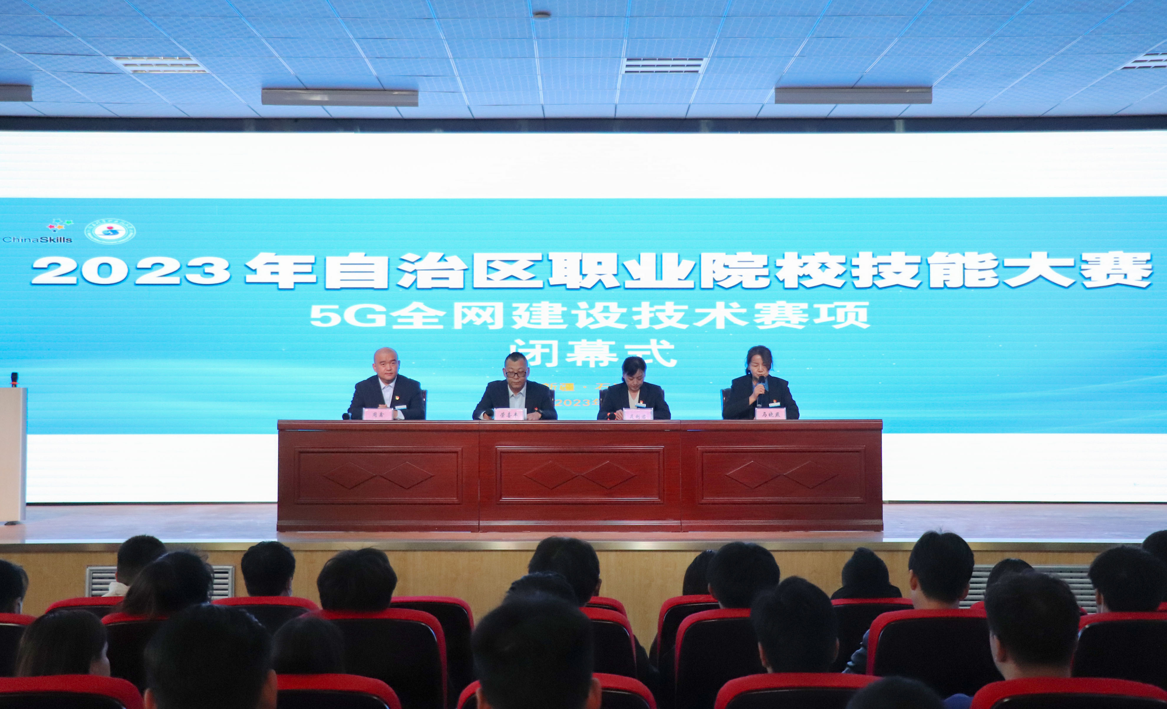 (王需、袁晓栋报道)4月8日,2023年自治区职业院校技能大赛零部件测绘与CAD成图技术、建筑工程识图、5G全网建设技术三个赛项在学院圆满闭幕。学院副院长万祥军、纪委书记晁利君、副院长马彩梅分别主持了三个赛项的闭幕式。三个赛项中,学院选派的教师学生均取得了第一名的好成绩,其中零部件测绘与CAD成图技术赛项学生组张志伟、教师组肖宇星获得第一名;建筑工程识图赛项团体赛范成龙、黎斌获得第一名,5G全网建设技术赛项李辉瑞池、艾力•阿卜都热伊木获得第一名,这些师生将代表学院参加2023年国家职业院校技能大赛。