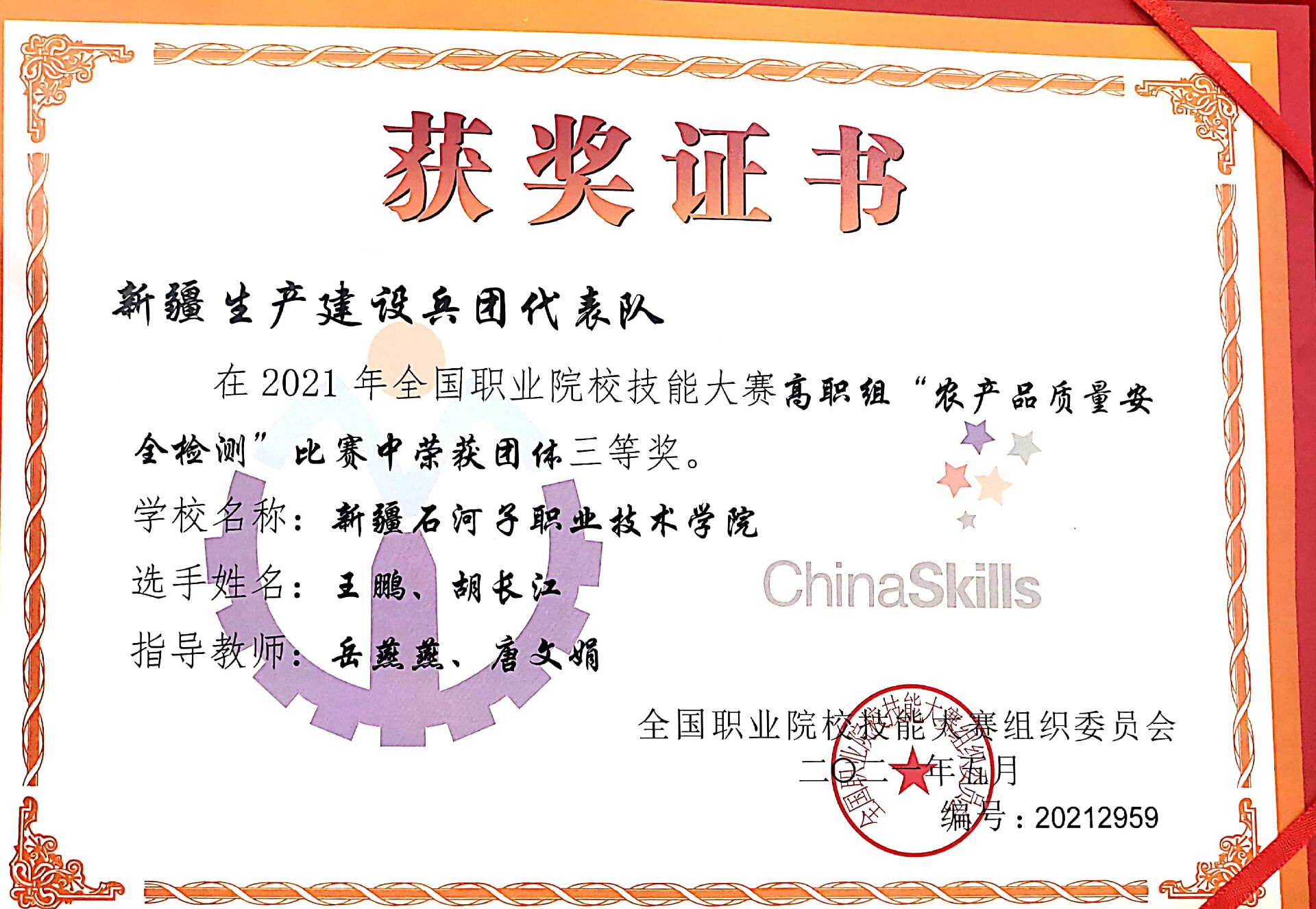 6月15日上午2021年全国职业院校技能大赛高职组“农产品质量安全检测”赛项在陕西杨陵如期开幕,经过了两天的实操能力比赛和数据处理、理论考试、虚拟仿真软件等操作环节。比赛顺利进行且圆满结束。beat365唯一官方网站参赛队代表新疆生产建设兵团参加比赛,荣获2021年全国职业院校技能大赛高职组“农产品质量安全检测”赛项团体三等奖。