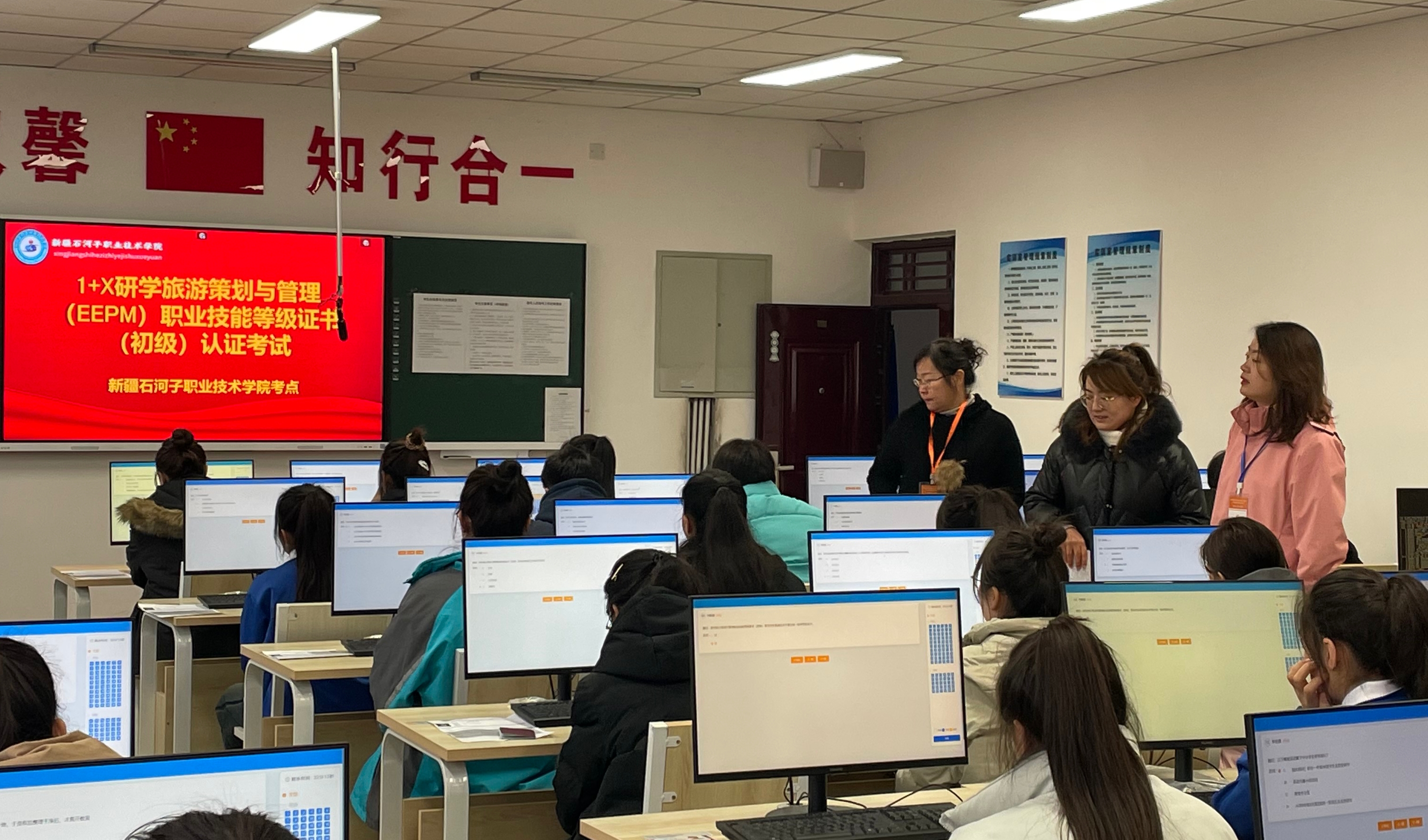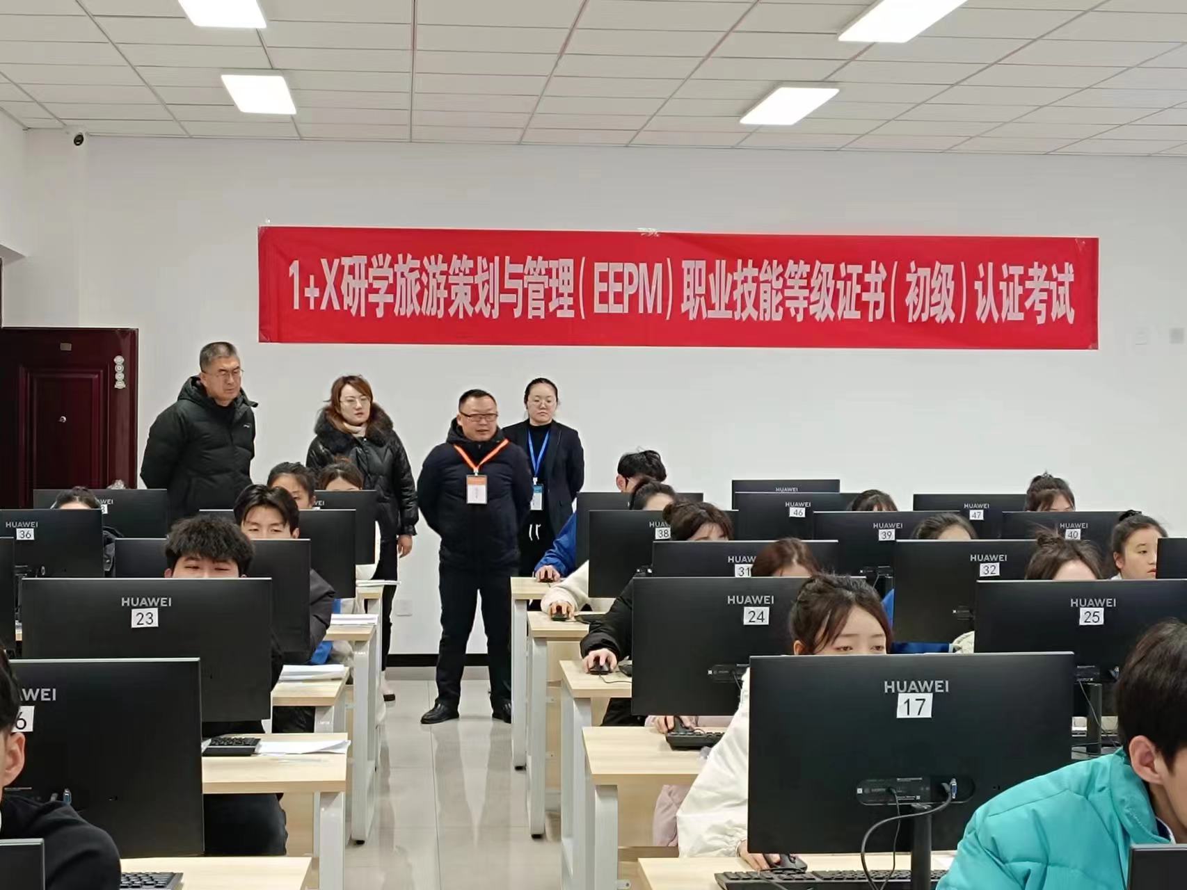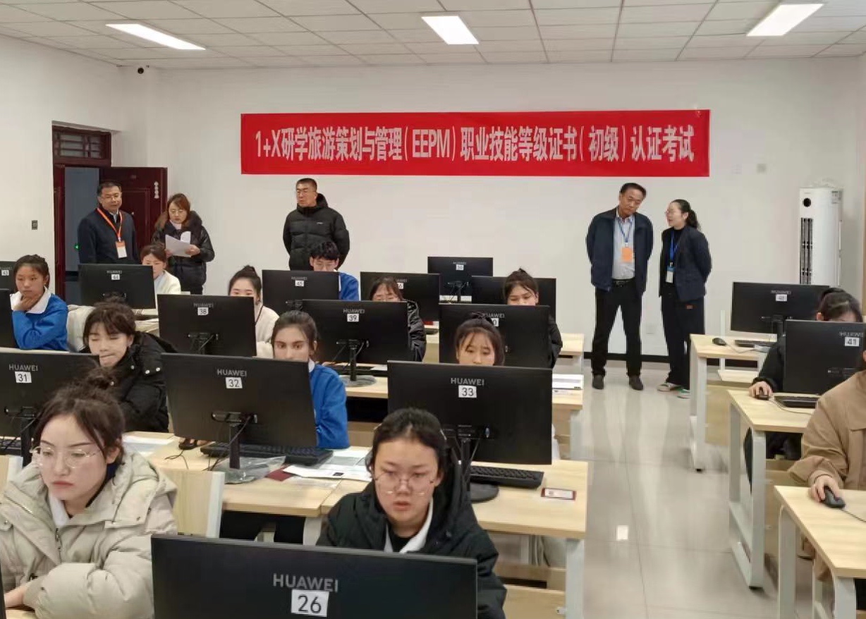 (王莹莹 刘炫坊报道)为贯彻落实国家、自治区职业教育改革实施方案精神,beat365唯一官方网站积极开展1+X证书制度试点工作。2023年12月9日,1+X研学旅游策划与管理(EEPM)职业技能等级证书首场考试在现代服务学院成功举办,40名考生参加了考试。学院书记史文革、纪委书记万祥军、副院长马彩梅、副院长张金果、教务处处长徐海霞莅临现场指导考试工作,现代服务学院书记俞峰、院长蒋小玉进行了巡考,考核严格按照1+X证书制度考核管理规定部署考务组织工作,确保该项目认证考试扎实、有序地进行。